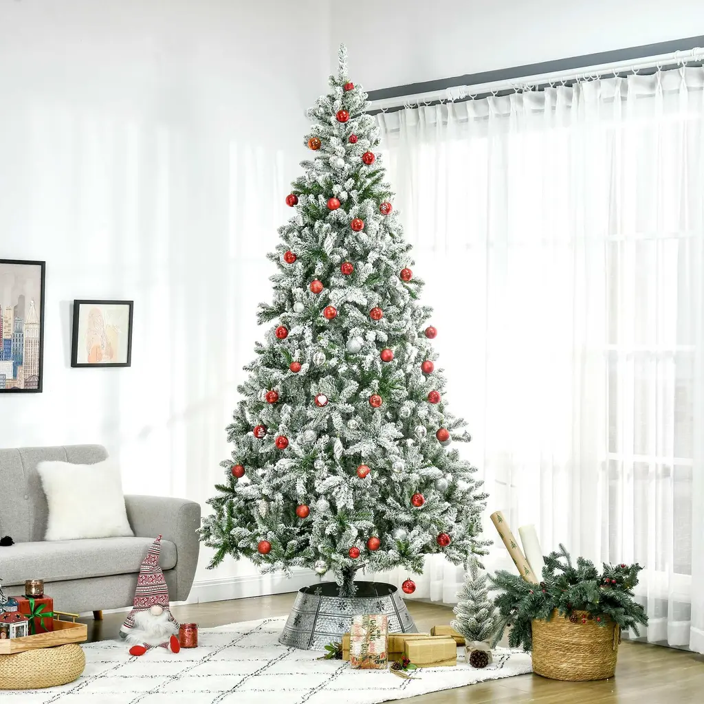 7.5' Tall Unlit Snow Flocked Pine Artificial Christmas Tree With Realistic Branches, Green Indoor Holiday Decoration - Green1