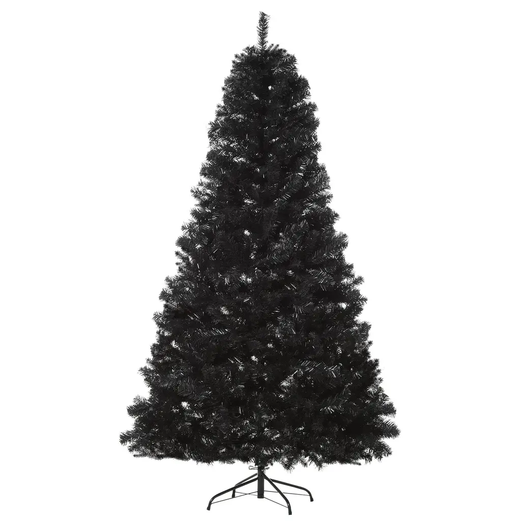 Product Overview: This 7ft Black Douglas Fir Christmas Tree offers a unique alternative to traditional holiday decor, combining spooky Halloween vibes with festive Christmas spirit. With 1346 full, realistic branch tips, it's perfect for those looking to create an edgy holiday atmosphere. The tree is unlit, allowing you to add your own lights and decorations. It also features a durable metal stand for extra stability. Specifications: