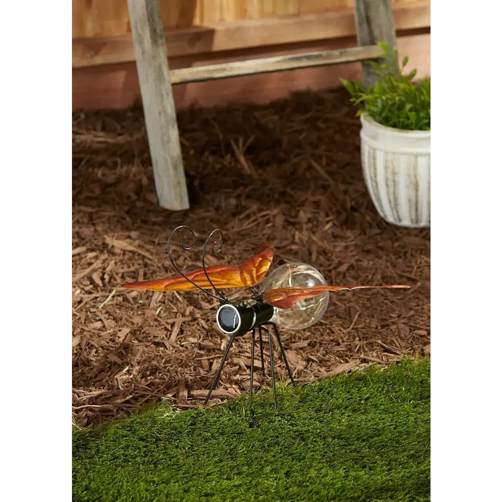 8" Iron Butterfly Solar Glow Bug Red - Zingz & Thingz: Outdoor Metal Garden Sculpture, No Battery Required