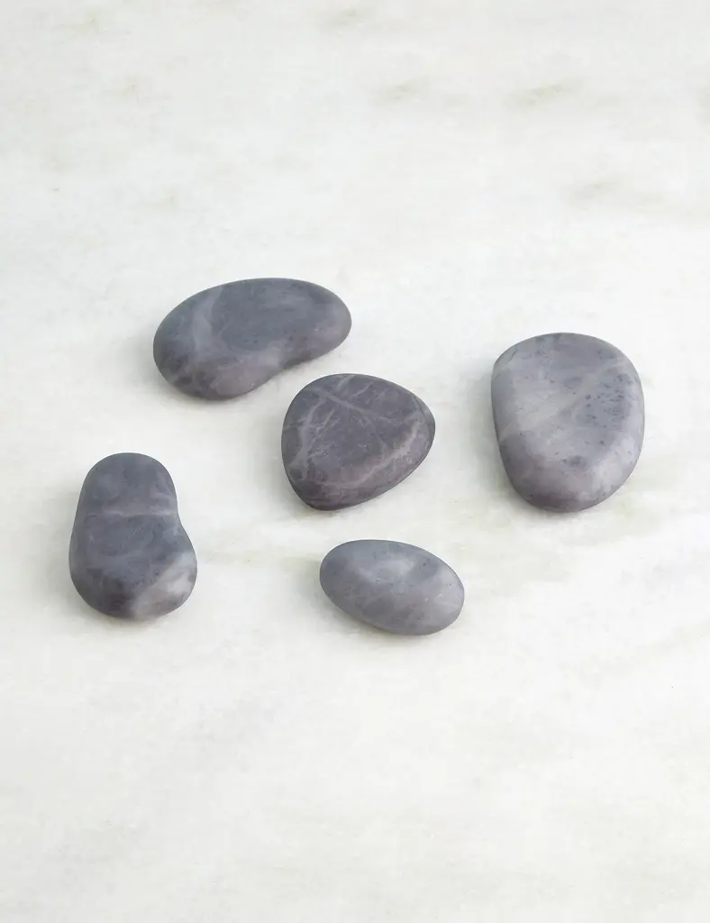Ashley Childers brings her effortlessly artful style to a range of elements for an inspired home. This set of alabaster river rocks features five unique stones that you can arrange for fresh impact indoor decor. With its natural veining and soft elegance, this set grounds your tabletop decor with a tranquil touch perfect for minimalist edits and organic yet modern designs.