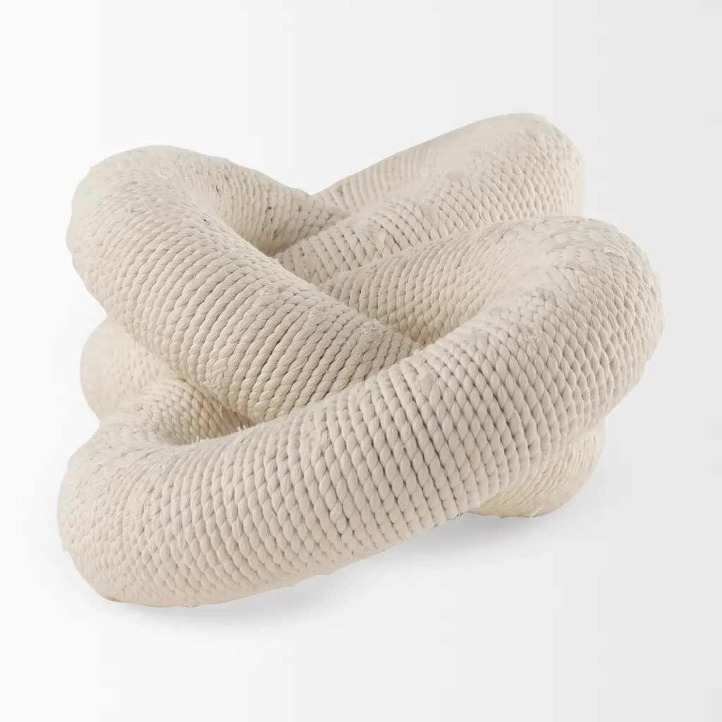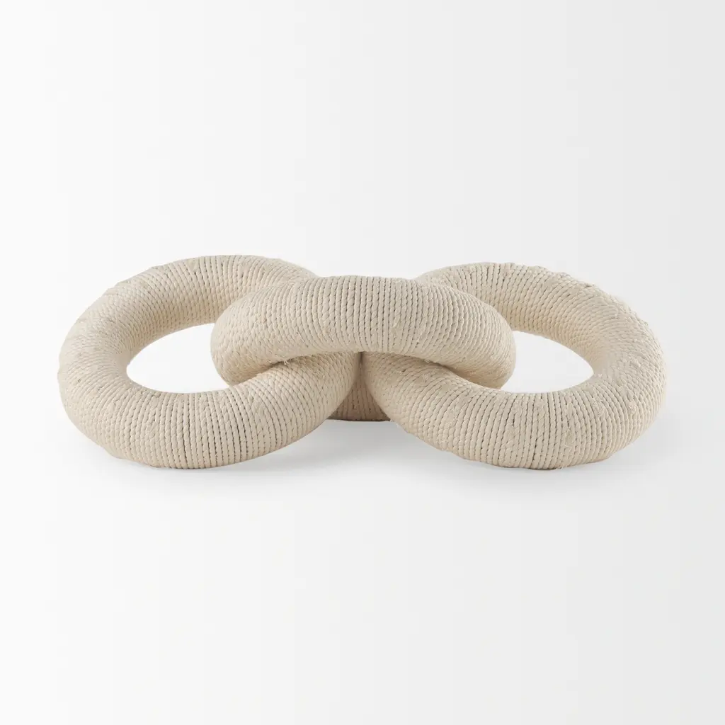 Alize Cotton Rope Wrapped Solid Wood Circular Chain Link Decorative Object - 14.0l X 11.0w X 8.0h - Cream