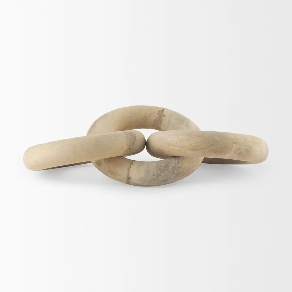 Alize is a decorative chain link object made of mood and wrapped in a light cotton rope. Display these links in a cabinet, on a coffee table, or console table to add texture and visual interest. ;
