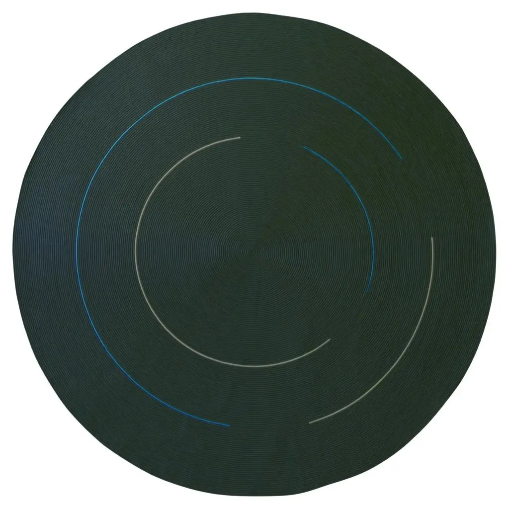 Oxides and enamels are cleverly combined to lend this brass decorative disk its distinguishing and unpredictable geometric design inspired by Aniconism. Evoking kinetic forces, it makes for a spot-on addition to contemporary decors, professional or residential, alike. The back is signed by the artist and ready for wall mounting.