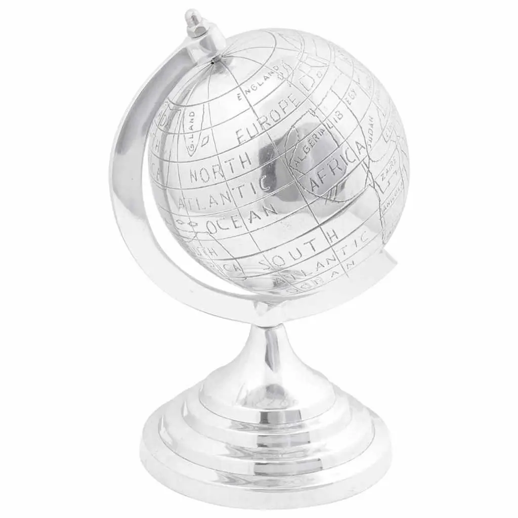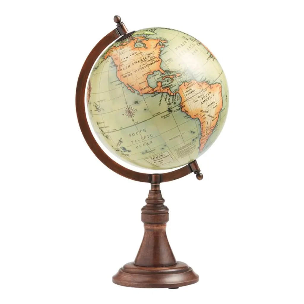 With a prominent axis and an antiqued olive hue, this old-world-style globe isn't your typical classroom tool, but rather a work of art to display in your home office or study. Crafted with a wood stand and brass accents, this timeless decor also makes a splendid gift for world travelers.