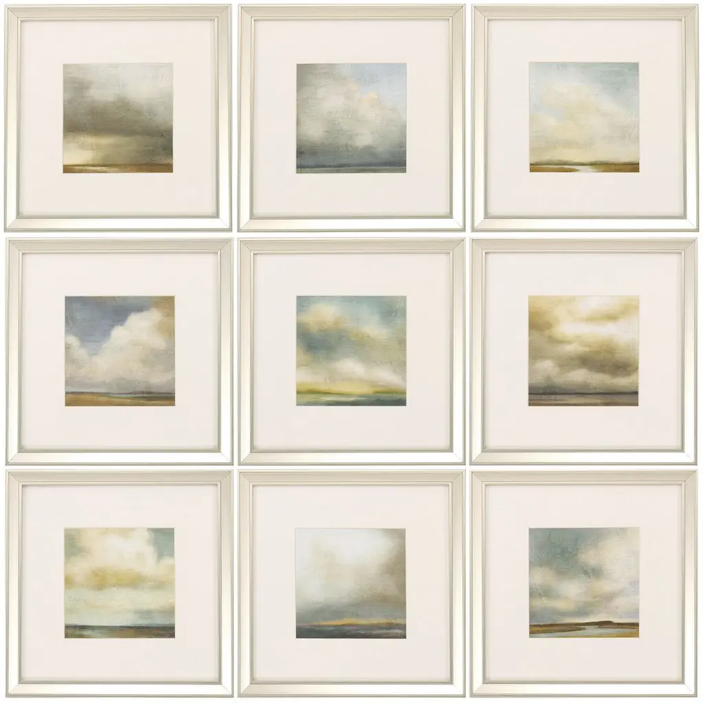 Transform your space with this captivating wall art set. These graphic art prints feature stunning landscapes and nature scenes in a square shape. Each print comes framed in a closed corner frame for a sleek and polished look. Made with high-quality paper and protected by glass, these prints will add a touch of sophistication to any room. Hang them in either landscape or portrait orientation to suit your space. Elevate your decor with this machine-made art set that brings the beauty of the outdoors inside.