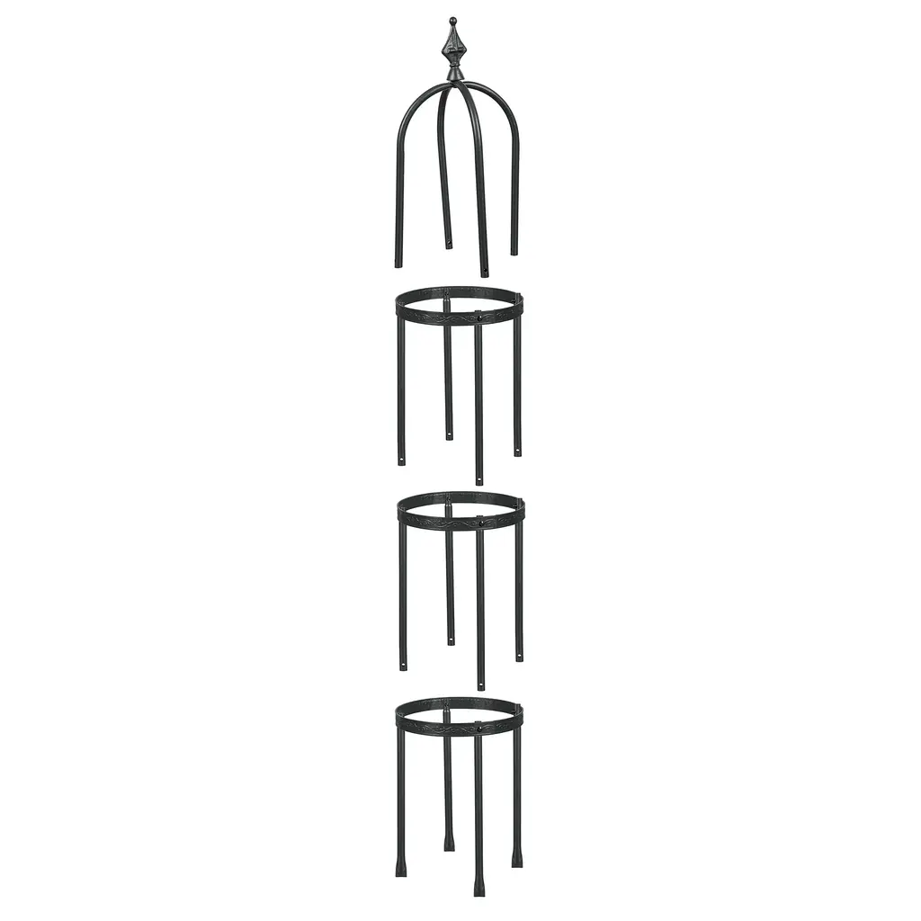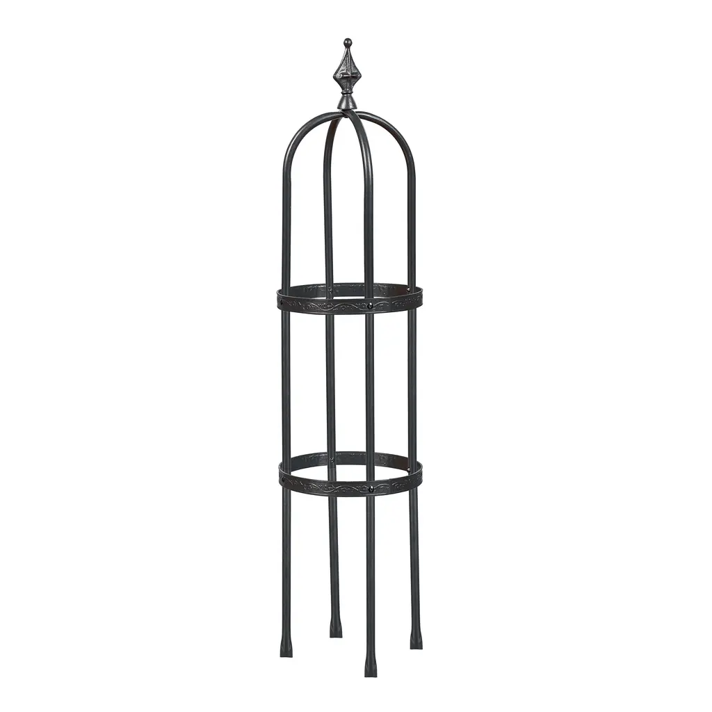 Elevate your garden's aesthetic with our powder-coated steel garden obelisk. It is the perfect plant trellis for climbing plants like roses, ivy, or jasmine. This weatherproof and waterproof trellis resists rust, perfect for year-round garden trellis use. Whether in your garden, patio, or planter, its floral patterned support bands and classic cast iron finial add an English garden charm, serving as a stunning garden arch trellis and a decorative focal point. Transform your outdoor area with our 5 feet tall, 11 inches diameter versatile garden trellis. This adjustable height obelisk trellis is a blend of functionality and elegance, ideal for supporting flowering Vines and any climbing plants like tomatoes, cucumbers, or flowering climbers. This tower trellis encourages healthy growth and adds aesthetic appeal to your garden, patio, or backyard, making it a practical addition for any climbing plants outdoor.