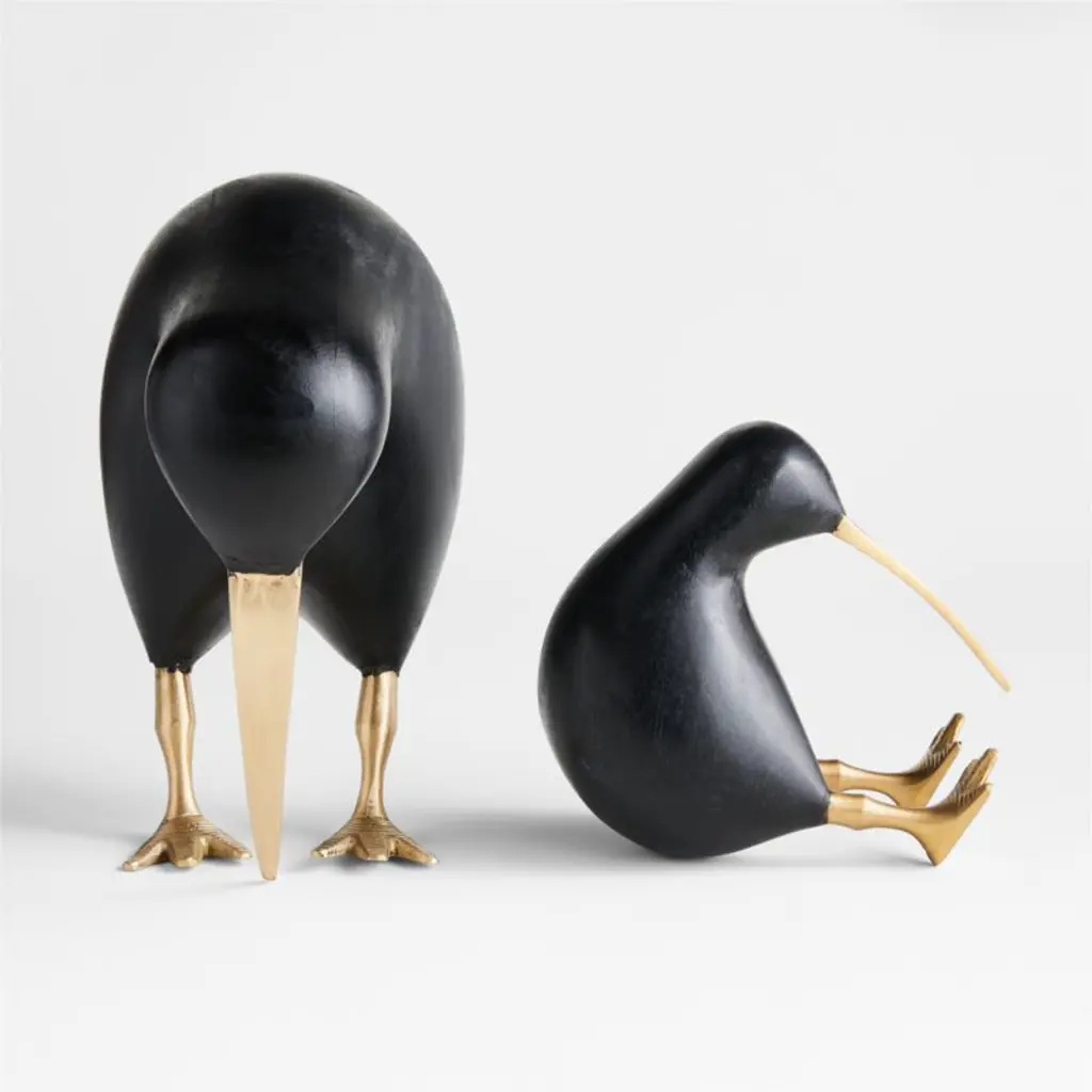 We added a partner to our ever-popular wood kiwi bird. Finished in black, the handcarved mango wood bird features a long beak and feet in shiny brass. The ingenious design lets the bird be positioned either sitting or standing. Made for us exclusively, each bird will vary slightly due to its handcrafted nature.Looking for gift ideas? Browse more gifts under $50.