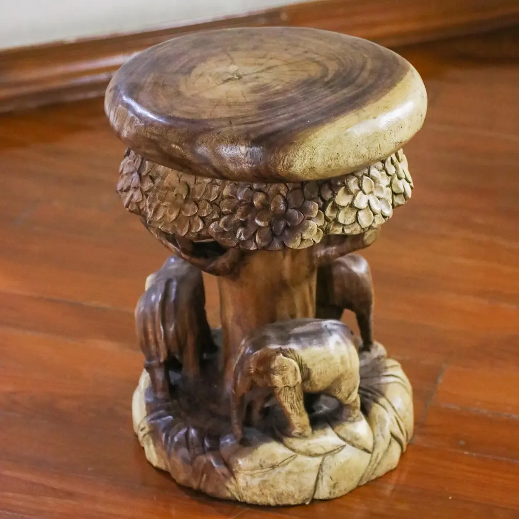 This charming decorative object is made from natural wood and metal, featuring an antique silver elephant on a stand. Its carved wood design adds a touch of elegance to any room, making it a perfect accent for the living room or bedroom. Style it on a shelf or desk to bring a transitional look to your decor.