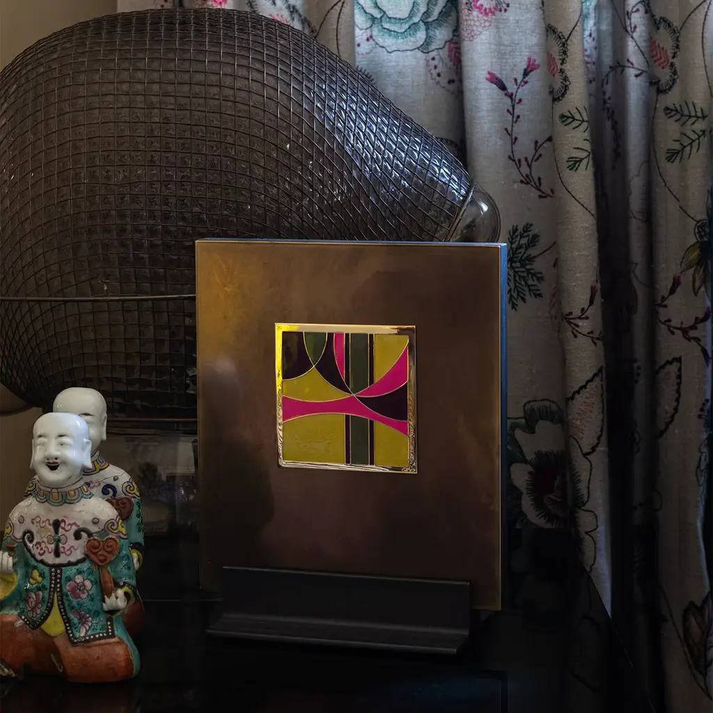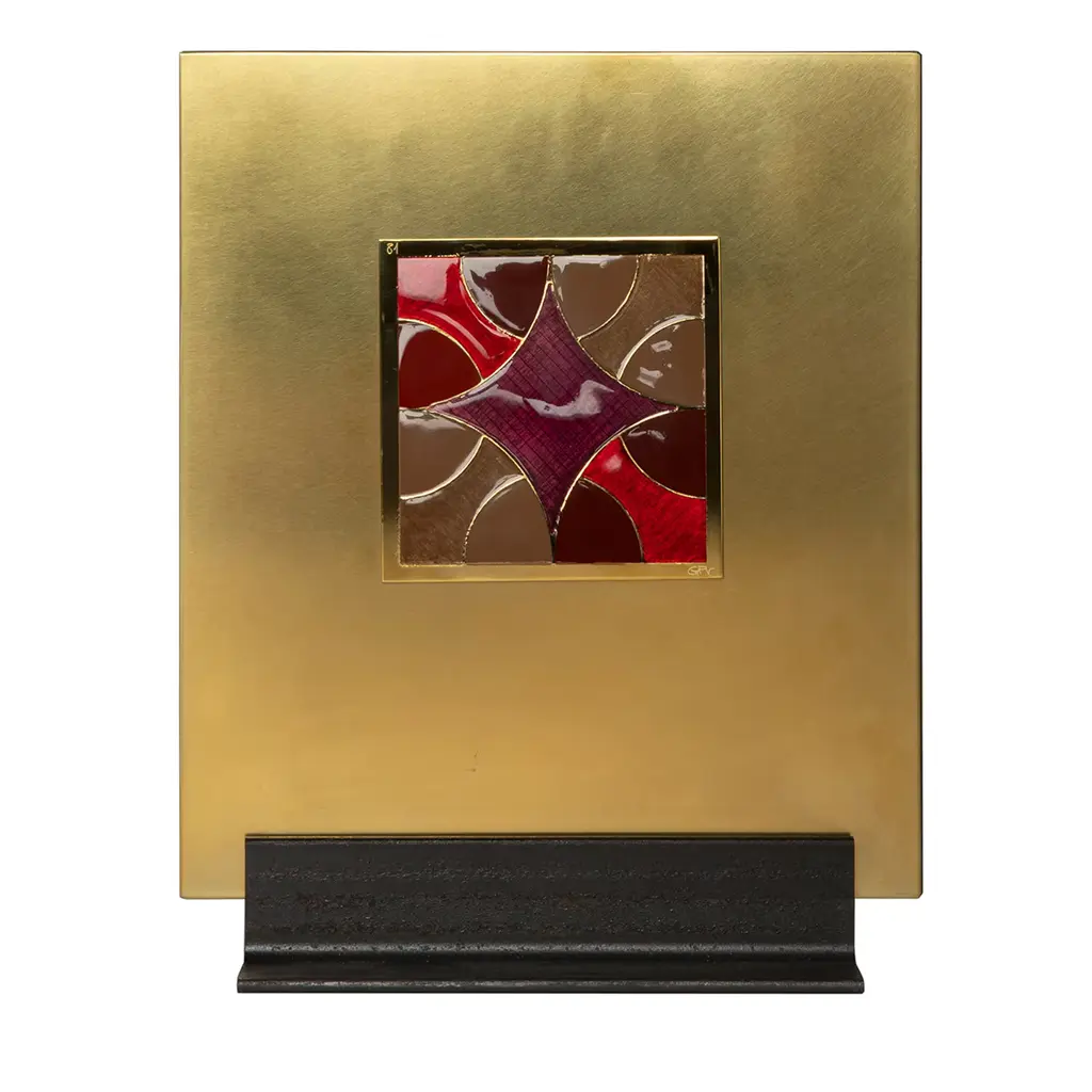 Carré Cloisonné On Burnished Brass Decorative Art Piece #6