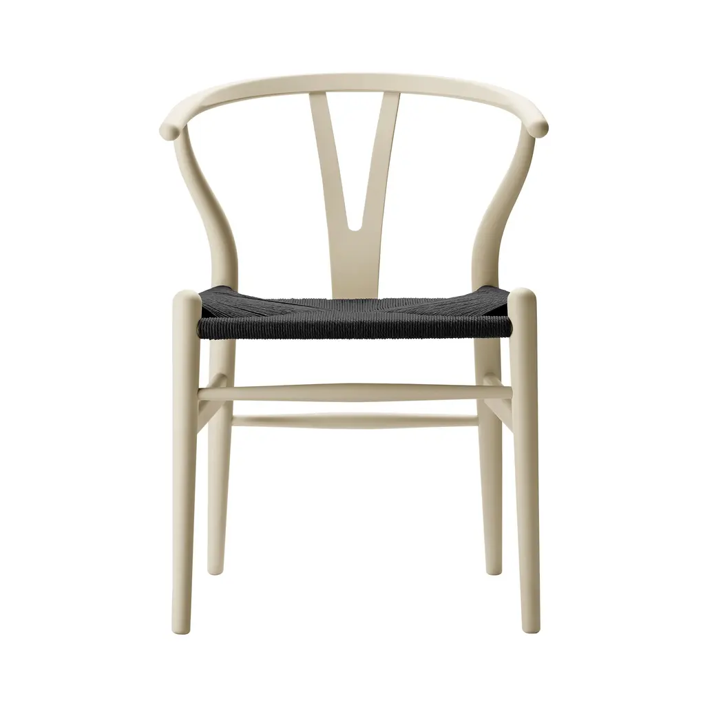 The essence of Danish Modern, Wishbone Chair was Hans J. Wegner's very first design for Carl Hansen & Søn, in continuous production since it debuted in 1950. With its iconic steam-bent profile, Wegner developed the characteristic Y-shaped back that assures its fabled comfort and elegant form. More than 100 steps are needed in making each chair — the hand-woven seat alone takes a skilled craftsman about an hour with 120 meters of paper cord — assuring its impressive durability and enduring style.