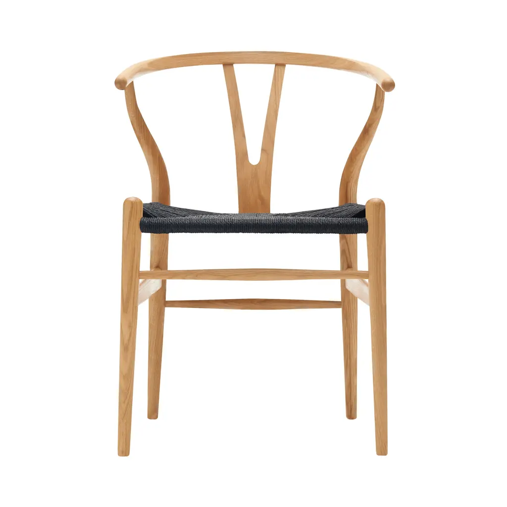 The essence of Danish Modern, Wishbone Chair was Hans J. Wegner's very first design for Carl Hansen & Søn, in continuous production since it debuted in 1950. With its iconic steam-bent profile, Wegner developed the characteristic Y-shaped back that assures its fabled comfort and elegant form. More than 100 steps are needed in making each chair — the hand-woven seat alone takes a skilled craftsman about an hour with 120 meters of paper cord — assuring its impressive durability and enduring style.
