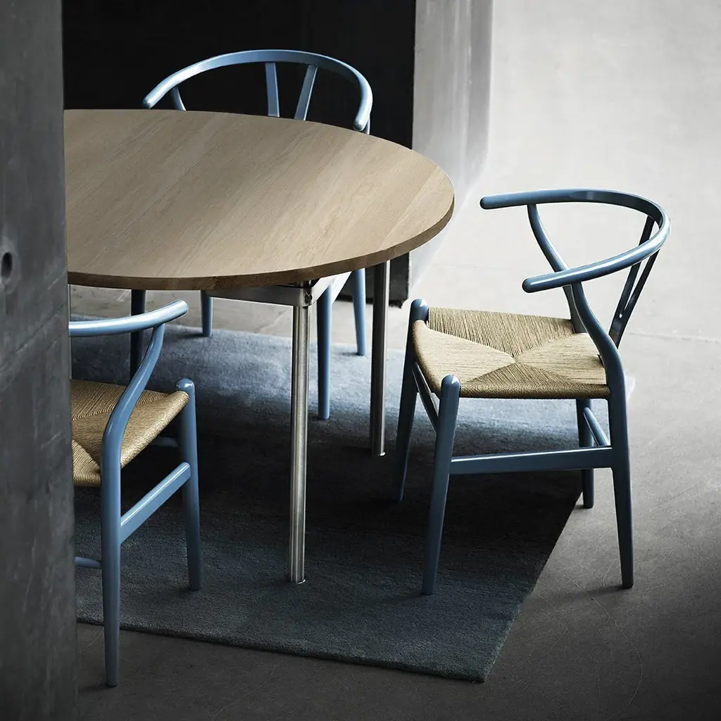 The Carl Hansen & Søn CH24 Wishbone Chair - Soft Colors offers a gentle reinterpretation of Hans J. Wegner's 1949 masterpiece through a carefully curated palette of matte finishes. This special edition maintains the iconic silhouette while introducing a subtle tactile experience that invites both visual and physical appreciation of Wegner's enduring design. Available in five classic colorsblack, gray, white, green, and redeach with an irresistibly soft matte finish, these editions showcase the chair's clean lines and characteristic expression while providing enhanced practicality. The special coating not only creates a visually inviting surface that draws the eye along the chair's graceful contours but also offers improved durability and easier maintenance, ensuring this investment piece retains its pristine appearance for generations. Crafted from beech wood, which provides a smooth, uniform surface with minimal visible grain beneath the painted finish, each chair maintains the distinctive Y-shaped back support that earned it the 'Wishbone' nickname. This innovative element provides essential structural support to the steam-bent top rail while ensuring exceptional comforta testament to Wegner's genius in merging form and function. Each Soft Colors Wishbone Chair is available with either natural or black paper cord seating, allowing for personalized styling within contemporary interiors. The seat itself showcases extraordinary craftsmanship, with skilled artisans spending approximately one hour weaving 120 meters of paper cord into a comfortable, durable surface that develops character with age. Perfect as a gentle counterpoint to brighter furniture pieces or as a subtle contrast to natural wood tables, the CH24 Soft Colors edition offers versatility and timeless appeal while honoring the Danish modern heritage that continues to captivate design enthusiasts worldwide.