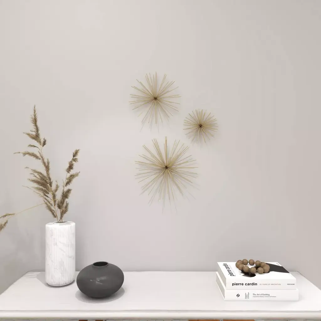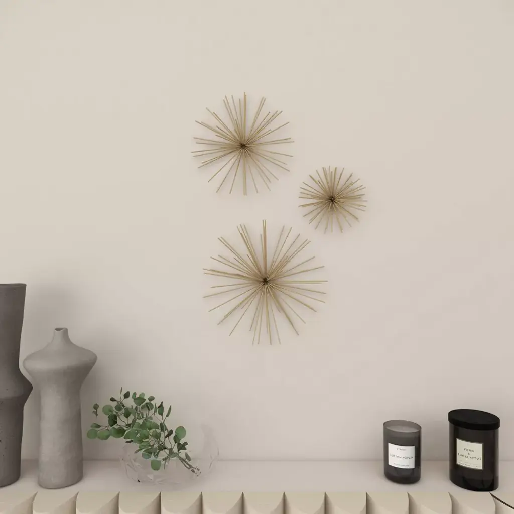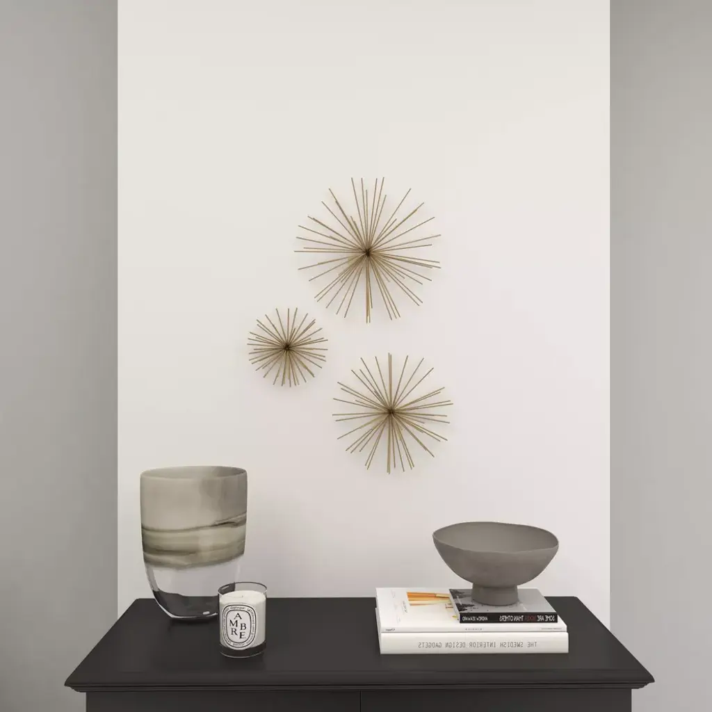 Contemporary Metal Starburst 3D Wall Decor Set Of 3 Gold - Olivia & May: Modern Abstract Art, Indoor Vertical Display