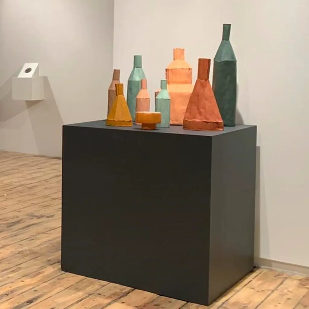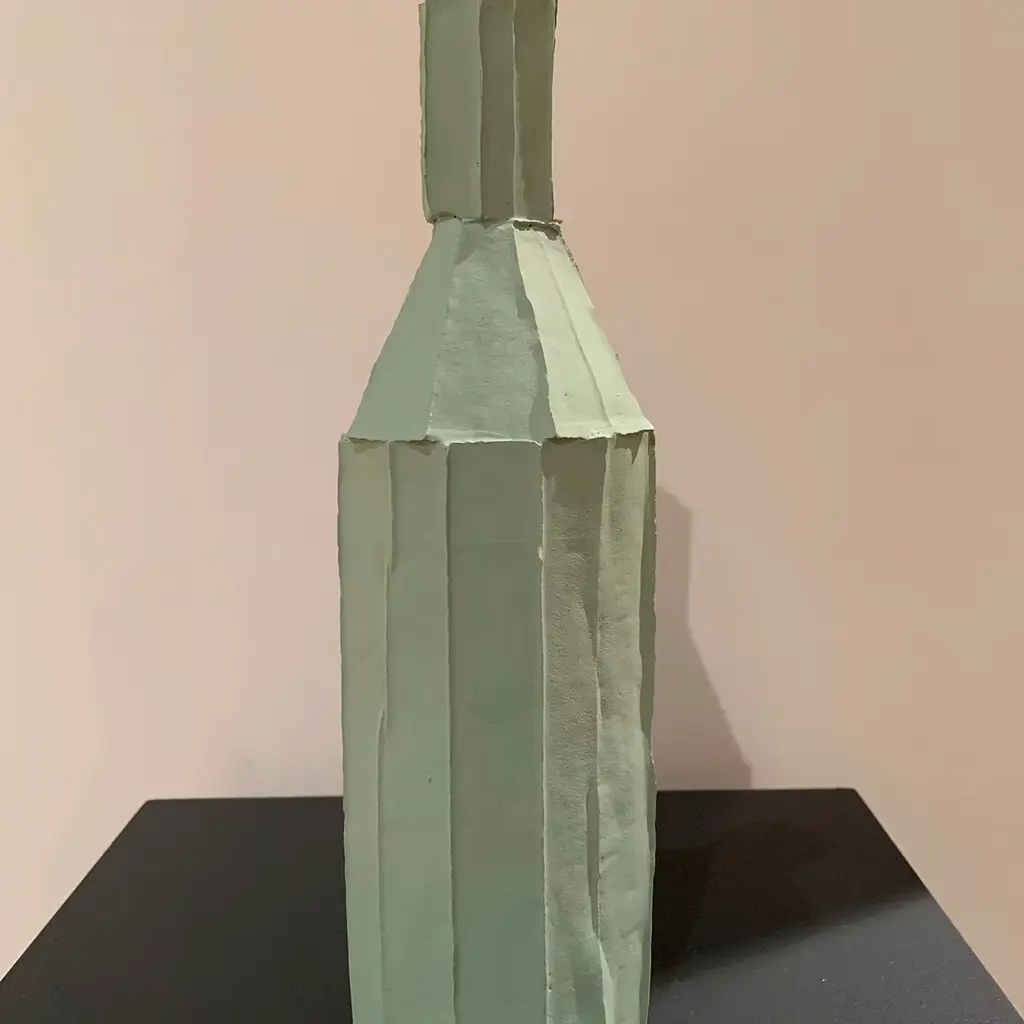 This superb decorative piece is a unique addition to an eclectic or modern interior. It is crafted by hand in the shape of a bottle with a stunning paper-like surface tinted a delicate mint color. The asymmetrical silhouette will add a dynamic touch to an entryway console or living room bookcase, either alone or combined with other object by Paola Paronetto in different shapes and colors for an unforgettable effect. Every one of Paola Paronetto’s creations is unique. Slight variations in shape, colour and size are to be considered a guarantee of authenticity and value. They are finished with non-toxic satin-finish enamels. Although very rarely, it is possible for them to leak after long periods of exposure to water. It is therefore advisable to test their water resistance before using them on delicate surfaces. They should not be used as dining utensils. The white pieces can be washed with water or sanitizing products, whereas the coloured pieces must be treated more gently and cleaned with a feather duster or a soft cloth, dry or moistened very slightly with water.