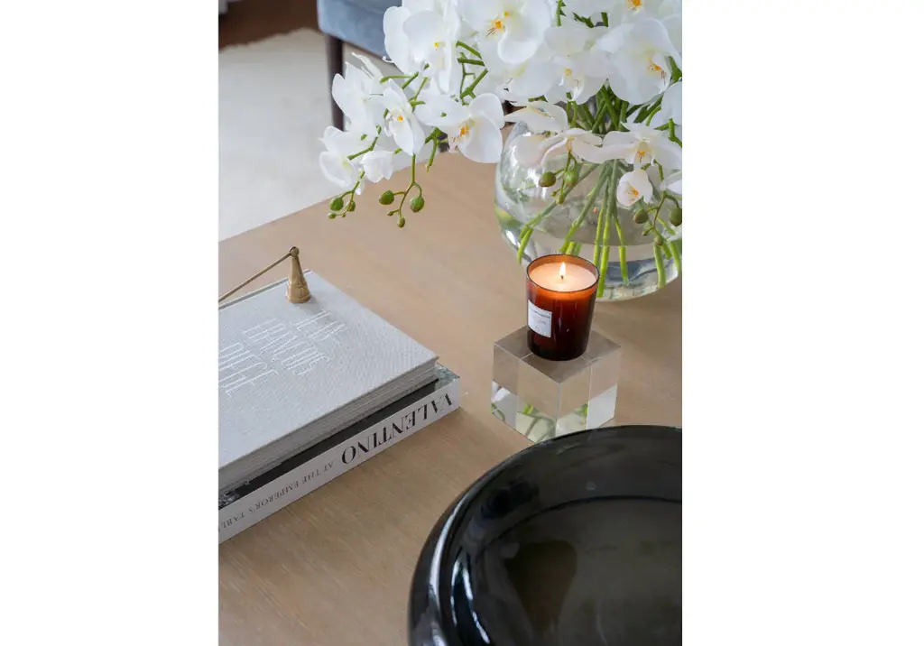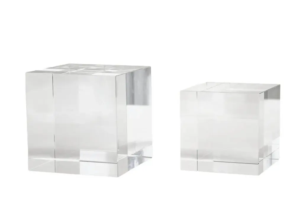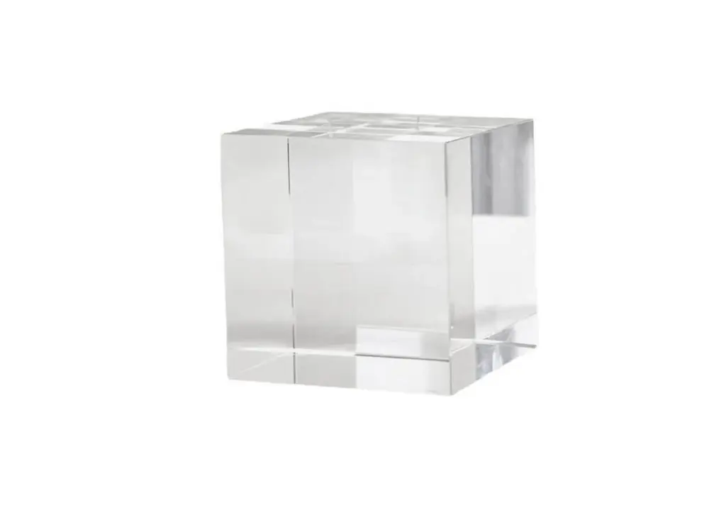 This chic cube elevates surrounding decor with its solid K1 crystal form accentuated by subtle cut accents. Its petite size effortlessly styles alone or pairs well with small vases and draped beads for a look of sophistication. Available in a small or large size, each sold separately.