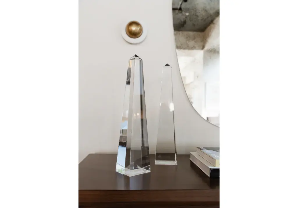 Final Sale J. Bennett Collection designed by Jessica Bennett. Add a touch of timeless elegance with a solid K1 crystal obelisk. Each piece has an individual look, lending visual height, and sophistication. Style one alone or in pairs for an elevated design.
