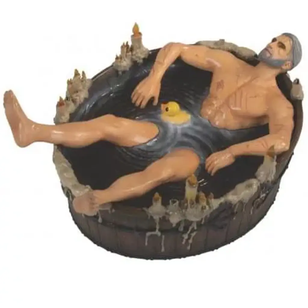 Originally an in-game scene, turned internet meme, turned CD Project Red April Fools joke, the demand that "this be brought to life" from Witcher fans became too great to bear. Dark Horse is proud to bring you this marvelously detailed, hand-painted polyresin statue featuring Geralt of Rivia relaxing and healing from his perilous journeys, in a candlelit bath, complete with his rubber ducky!