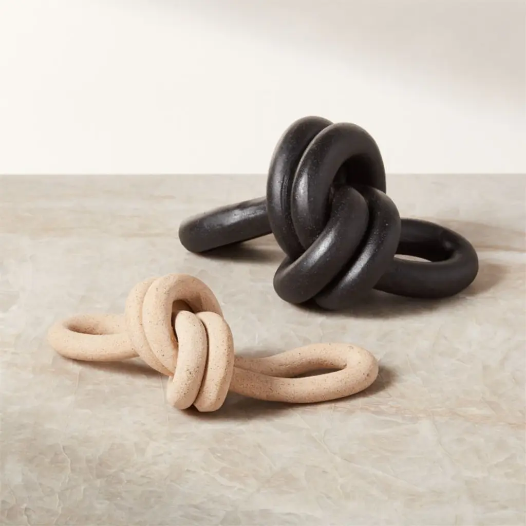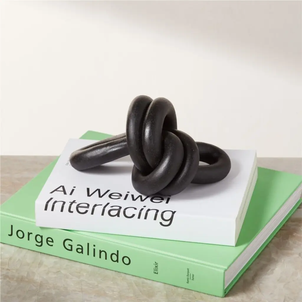 Virginia Sin, designer and founder of the Brooklyn-based ceramics line SIN, created her signature double loop knot design by hand out of extruded stoneware coils. The modern shape makes a statement solo or paired with a stack of books. Crafted in Brooklyn, SIN's award-winning handmade designs, like the double loop knot, have been featured in Architectural Digest, goop and more. CB2 exclusive.