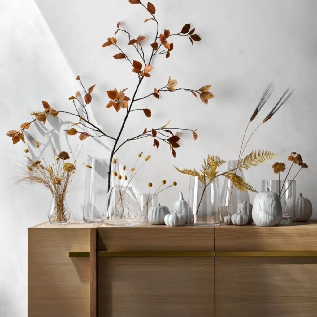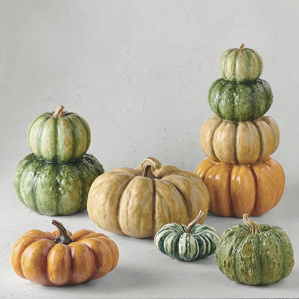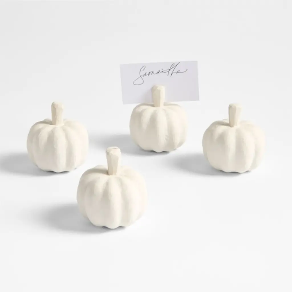 A patch's worth of papier-mâche pumpkins infuses your space with the seasonal spirit in utterly modern matte white. Arranged on the dining table, tumbled in a centerpiece bowl or scattered throughout the home, the seven unique pumpkins capture the fascinating shapes and ghostly hue of heirloom varietals. Skilled artisans craft each winter squash by hand with newspaper and kraft paper, finishing it off with a coat of creamy paint. A Crate & Barrel exclusive our set of seven decorative white pumpkins sets the scene for autumnal delights throughout the Halloween and Thanksgiving seasons.