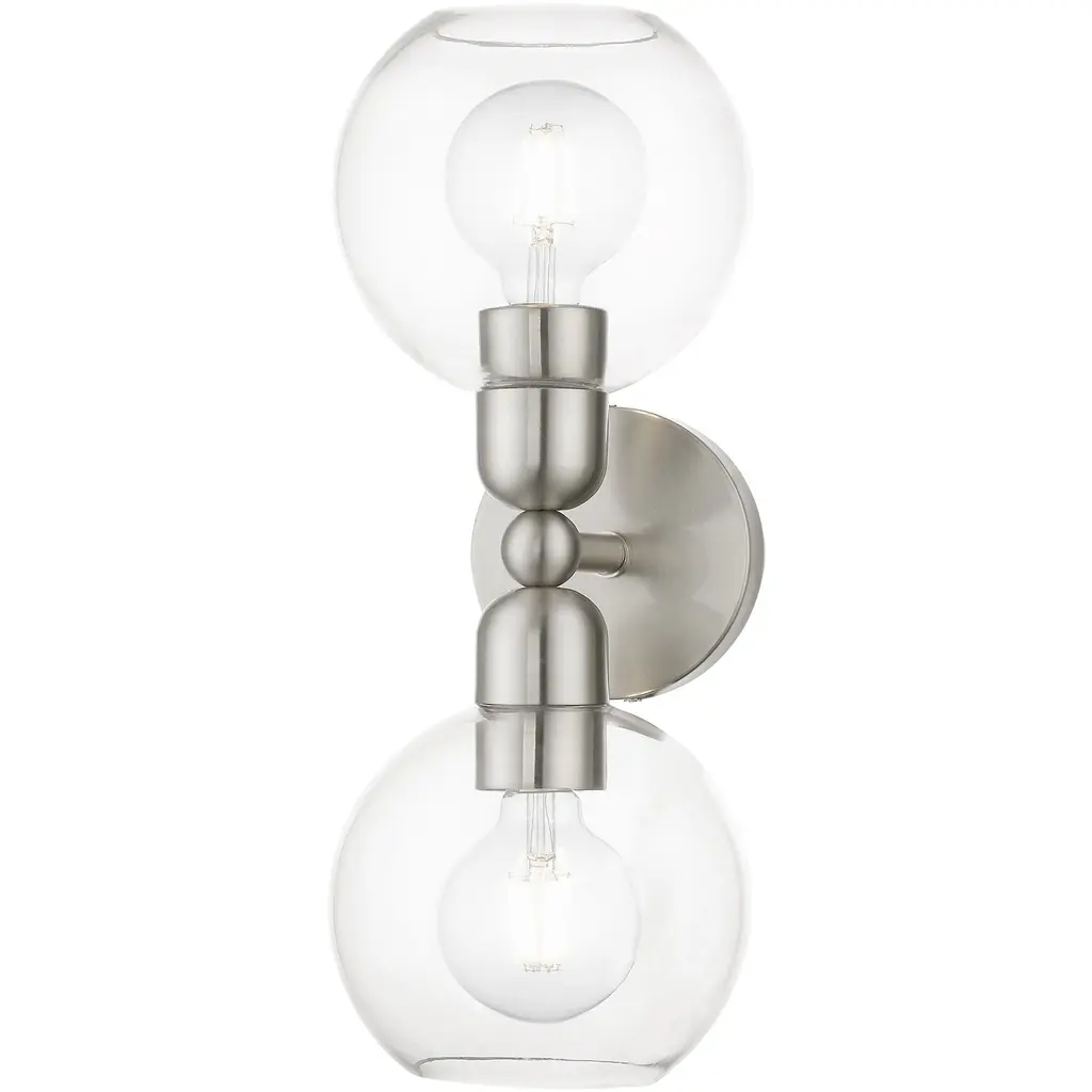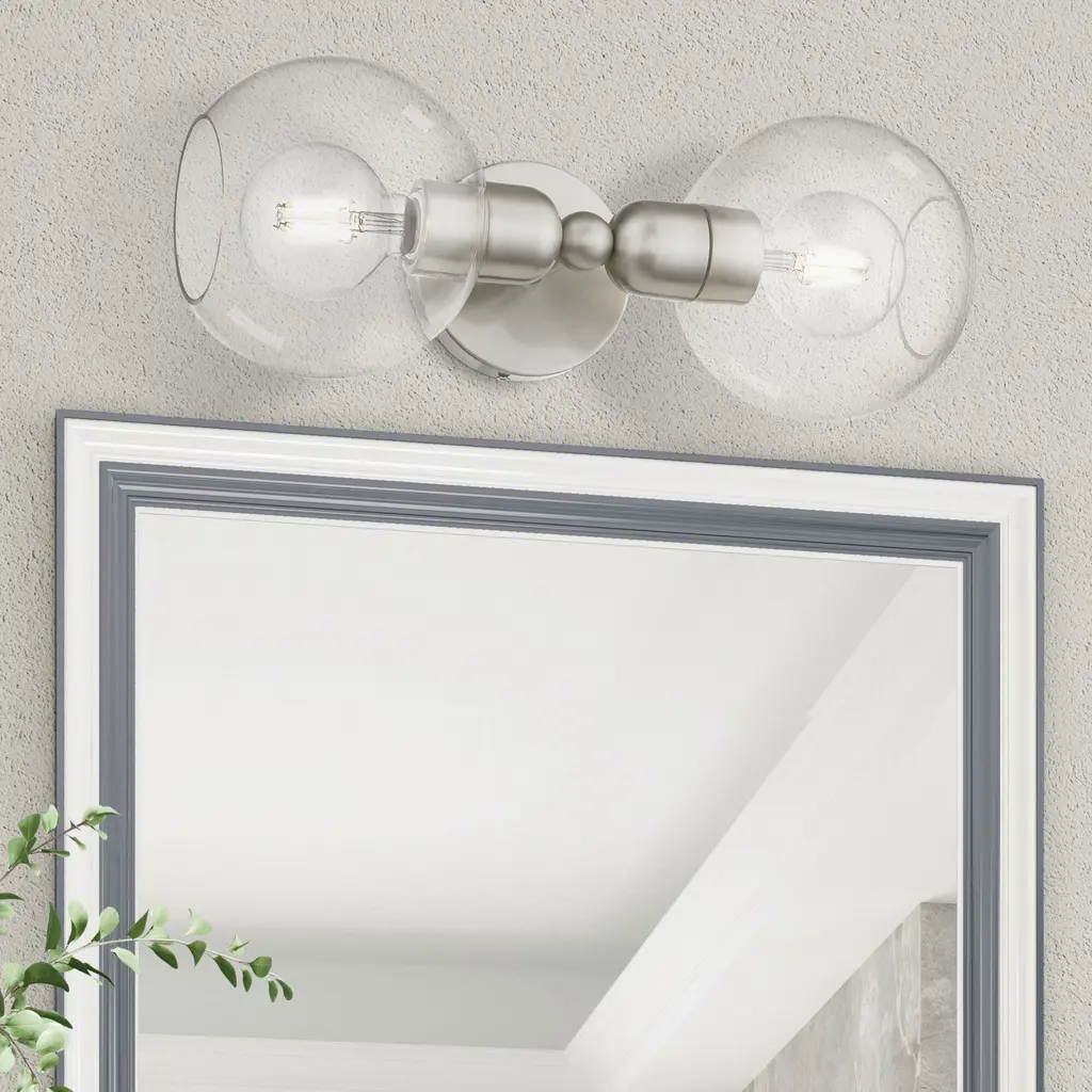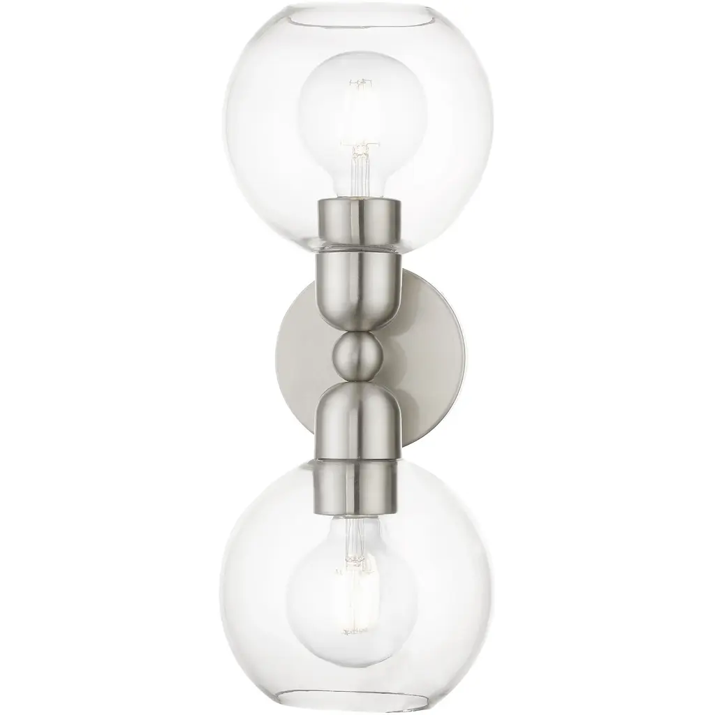 2 Light Brushed Nickel Sphere Vanity Sconce