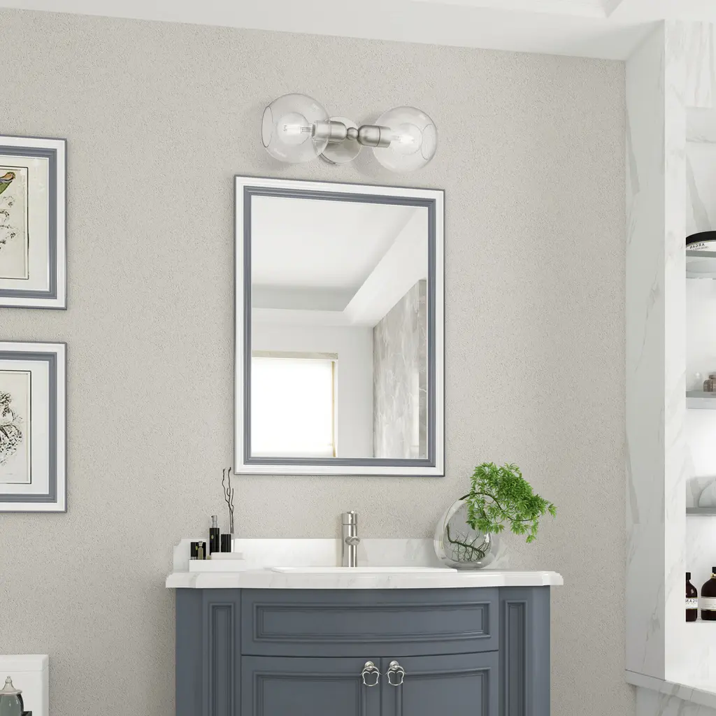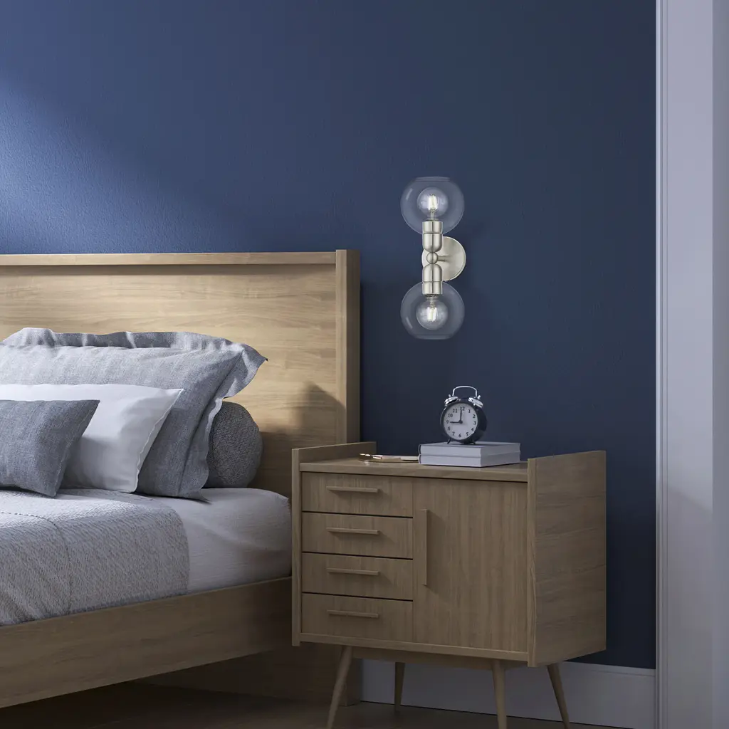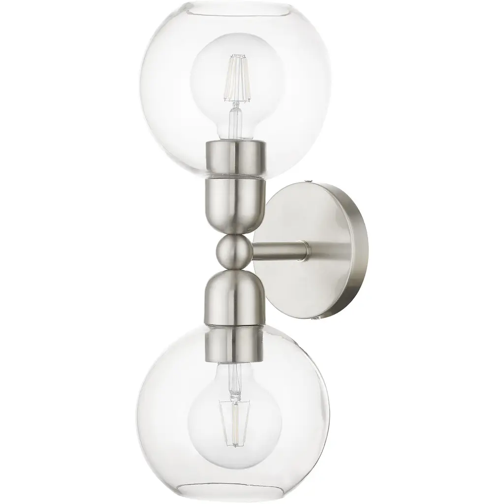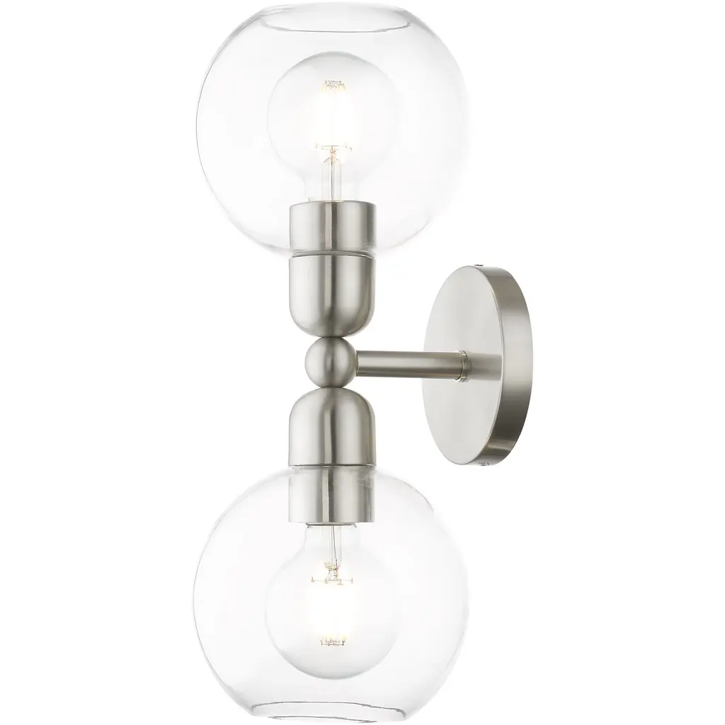 2 Light Brushed Nickel Sphere Vanity Sconce