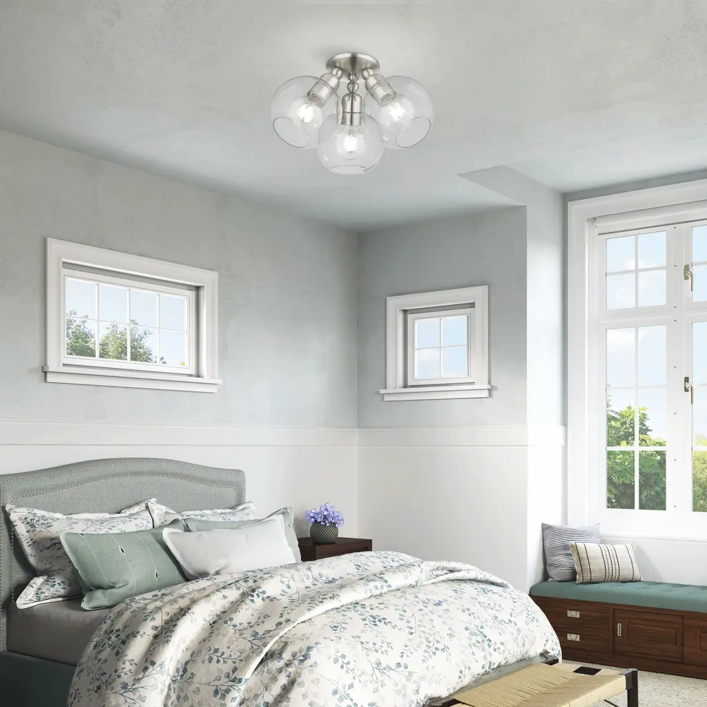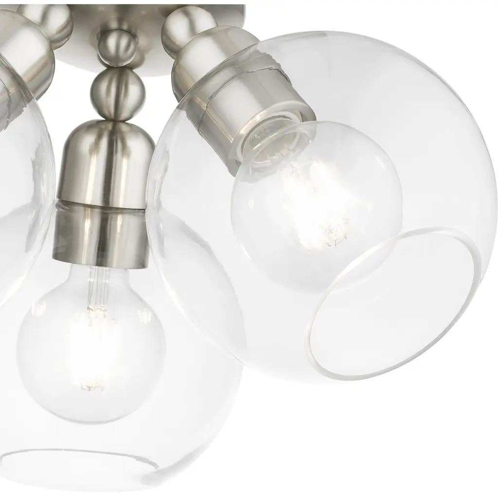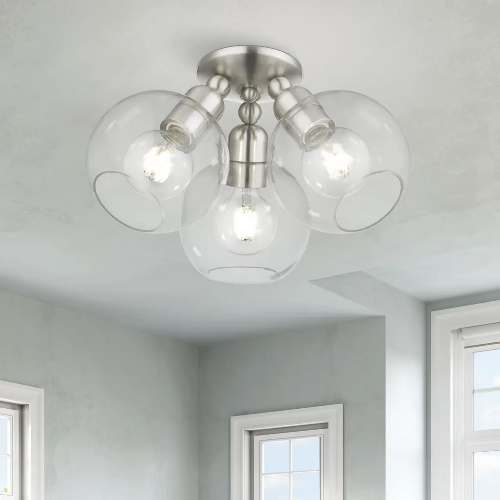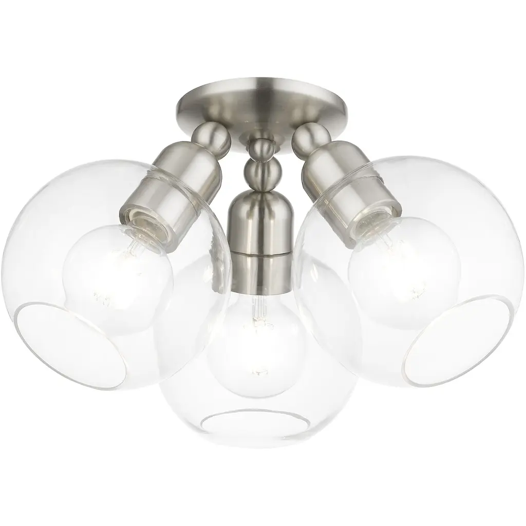Downtown 3 Light 16 Inch Brushed Nickel Semi-Flush Ceiling Light, Sphere