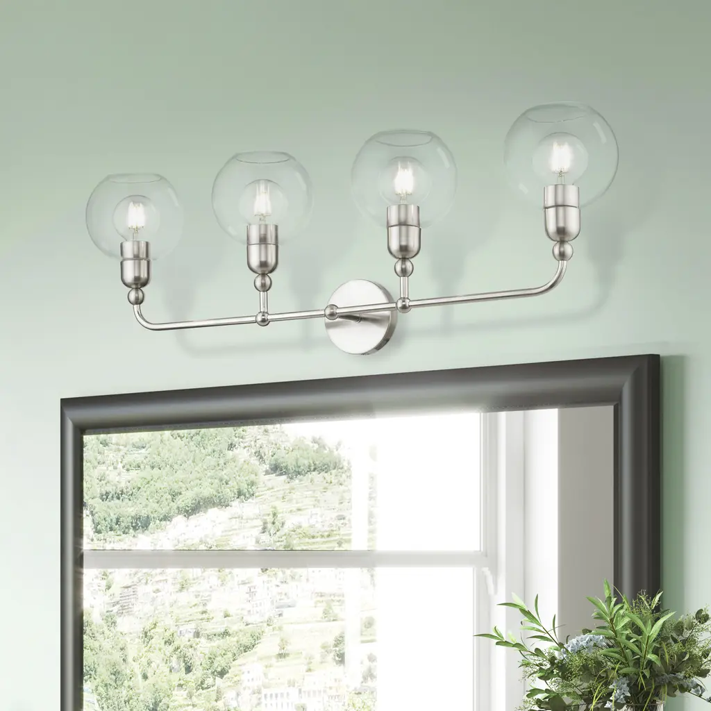 Downtown 4 Light 36 Inch Brushed Nickel Vanity Sconce Wall Light, Large, Sphere