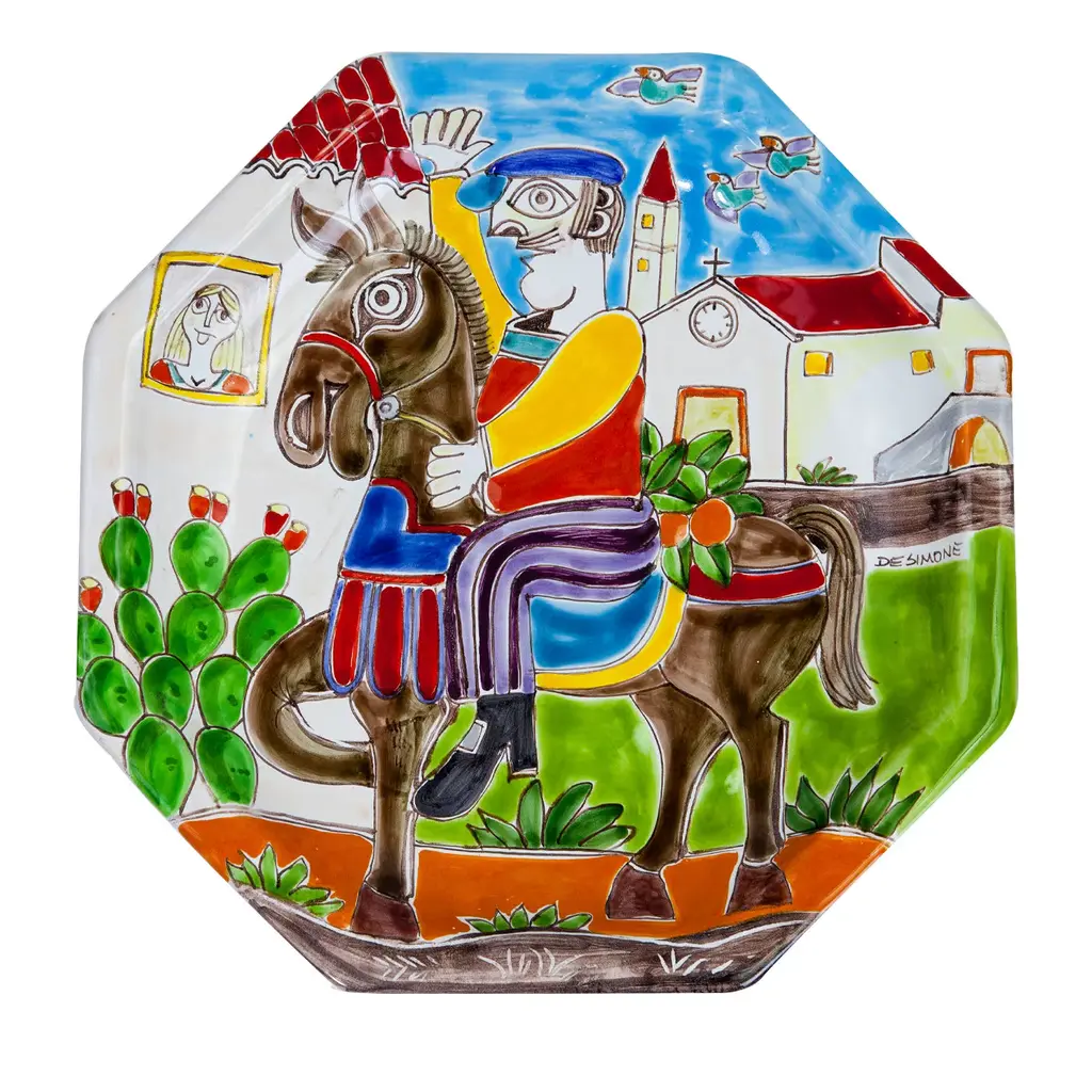 A fine piece of ceramic craftsmanship, this exquisite hand crafted decorative DS Square Plate features a design depicting a colorful slice of country life to brighten up any room. Complimenting both modern and classic furnishings, the plate has a hole in the back, allowing for the 37 x 37 cm plate to be fixed to a wall if required.