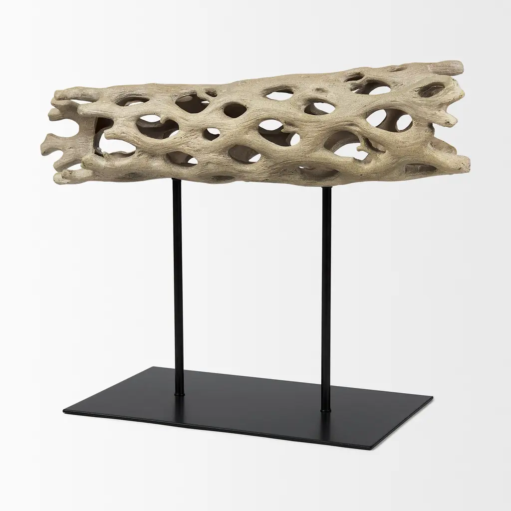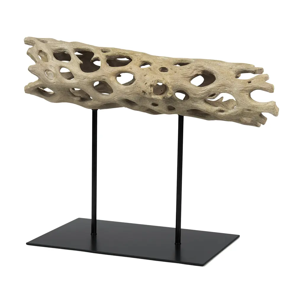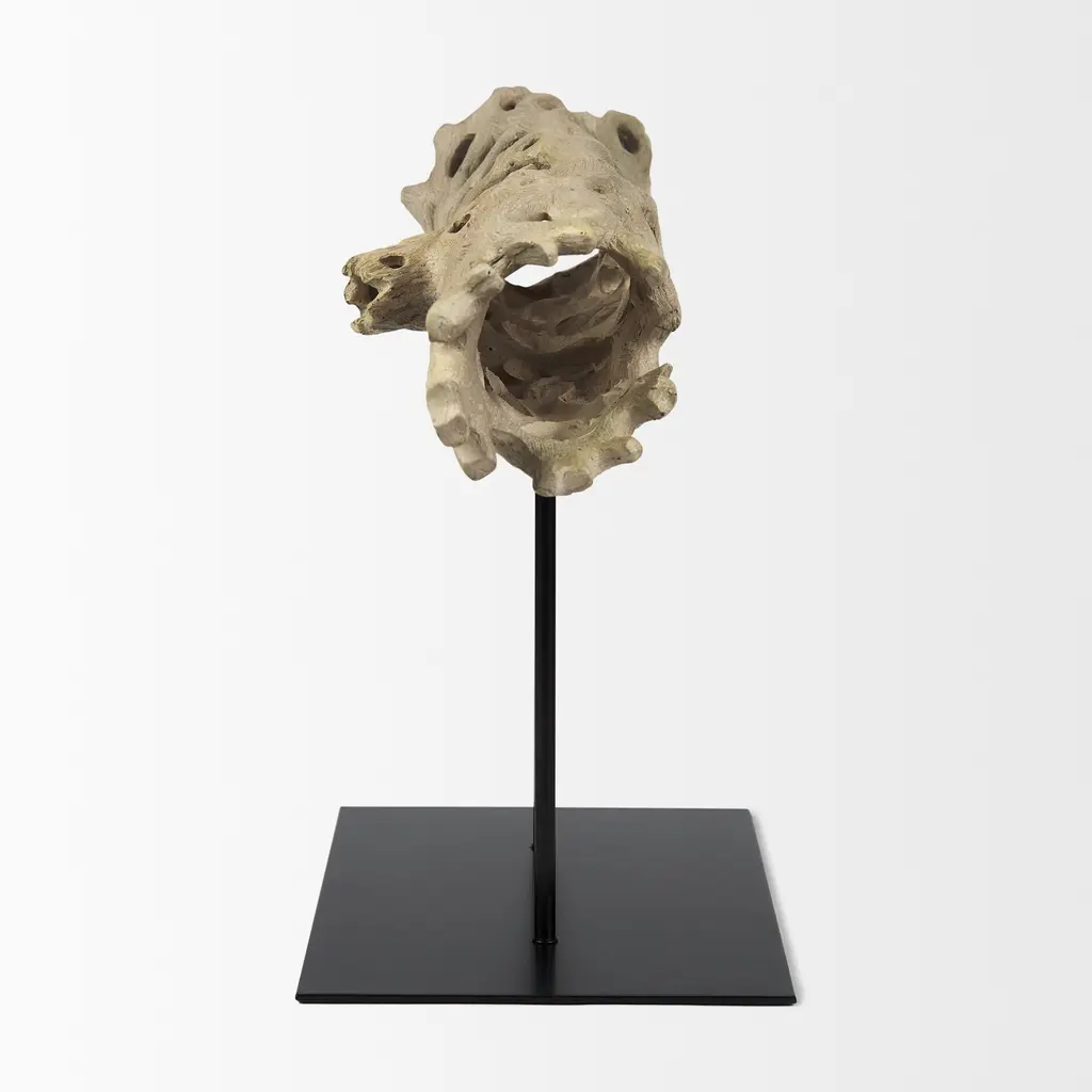 Dwell is a Cholla Wood decorative object, made of resin on a metal stand.