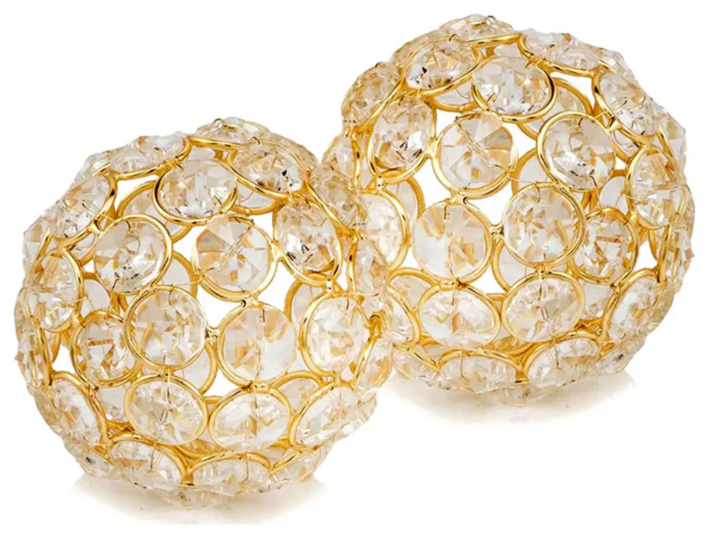 Facetas 3" Gold Cristal Spheres, Set Of 2