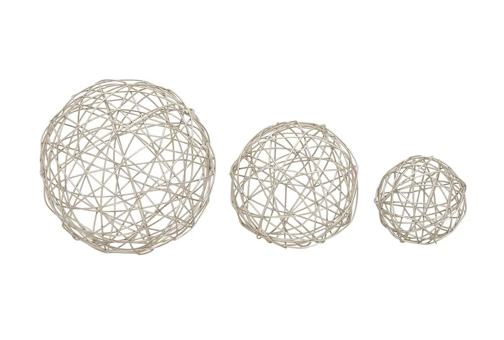 Provide the best gift to friends and family with this set of 2 silver metal spheres that perfectly blend style and functionality. The metal ball decor can complement your current bookshelf decorative objects or decor scheme to make it the focal point of your table or garden. The silver coffee table decor spheres come in 2 sizes and look great on any dining table, coffee table, counter, and fireplace mantel.
