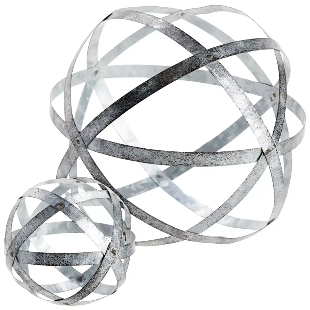 Farmlyn Creek 2 Piece Metal Decorative Spheres For Home Decor, Table, Rustic Style Shelf Decor Accents, Distressed Silver, 2 Sizes