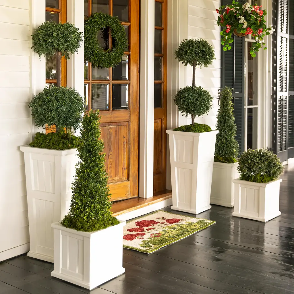 If you want greenery that always looks great, try our Faux Boxwood Double Topiary Sphere. This realistic looking topiary is made to last from all-weather polypropylene. This lush Boxwood Double Topiary Sphere requires no work, just "plant" and enjoy. No pruning, no watering, no shedding.You’ll love the seasonal versatility of this artificial topiary – use it all year as is, or decorate it with lights, ribbon or ornaments for the holidays. Gorgeous indoors or out, use one or try multiple topiaries for visual impact.Long-lasting and durable, the UV-resistant polypropylene shrub stays green, doesn’t fade. Each 48"H topiary comes with a 6" stake to use with urn, planter or in-ground. Planter not included. Imported.