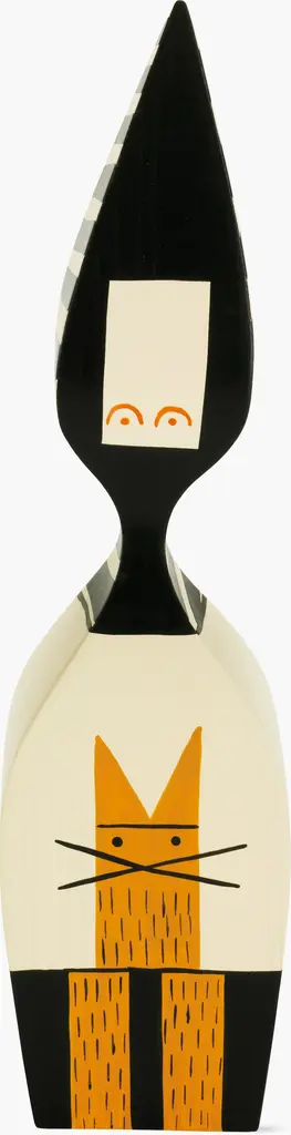 Alexander Girard's interest in folk art led him to create a collection of Wooden Dolls (1963) for his own Santa Fe home. The painted surfaces of these semi-abstract, sculptural figures show aesthetic elements from Central America, Eastern Europe, and Italy. This mixed group of figures is available in a special edition series based on documents and originals in the Alexander Girard Archive of the Vitra Design Museum. Made in Germany.