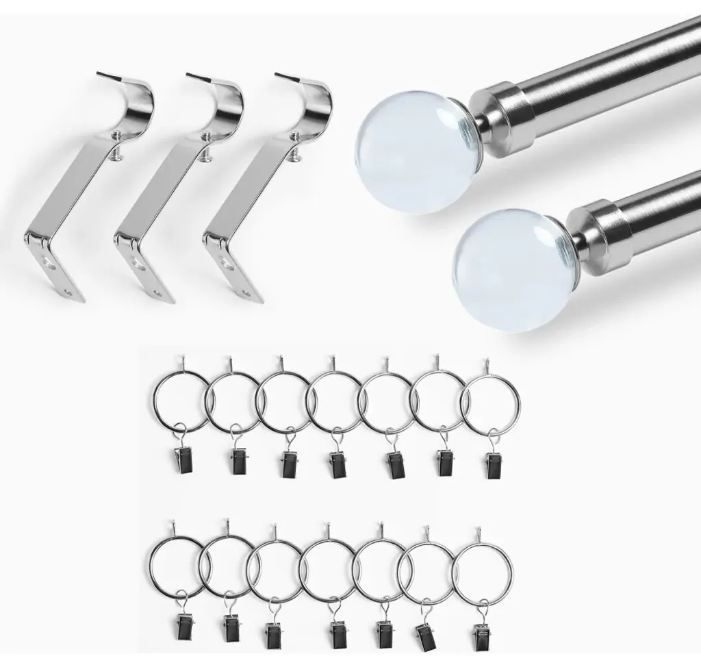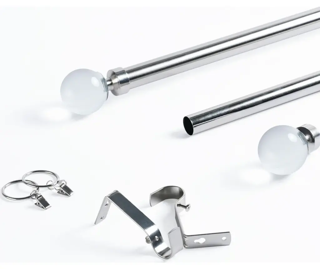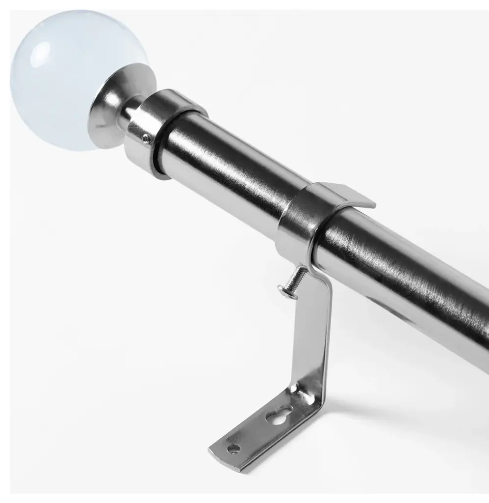 The modern metal finish of our Nickel Extendable Metal Rod Set dresses up any window for a designer quality look! Our Nickel Extendable Metal Curtain Rod Set comes complete with a telescoping curtain rod, mounting brackets, stylish removable finials, and installation hardware including screws and wall anchors. Our sturdy 1" diameter rods expand from 52" to 144" wide and come with installation instructions.