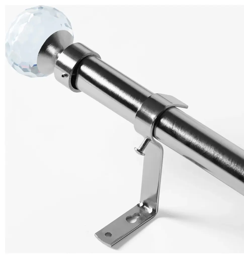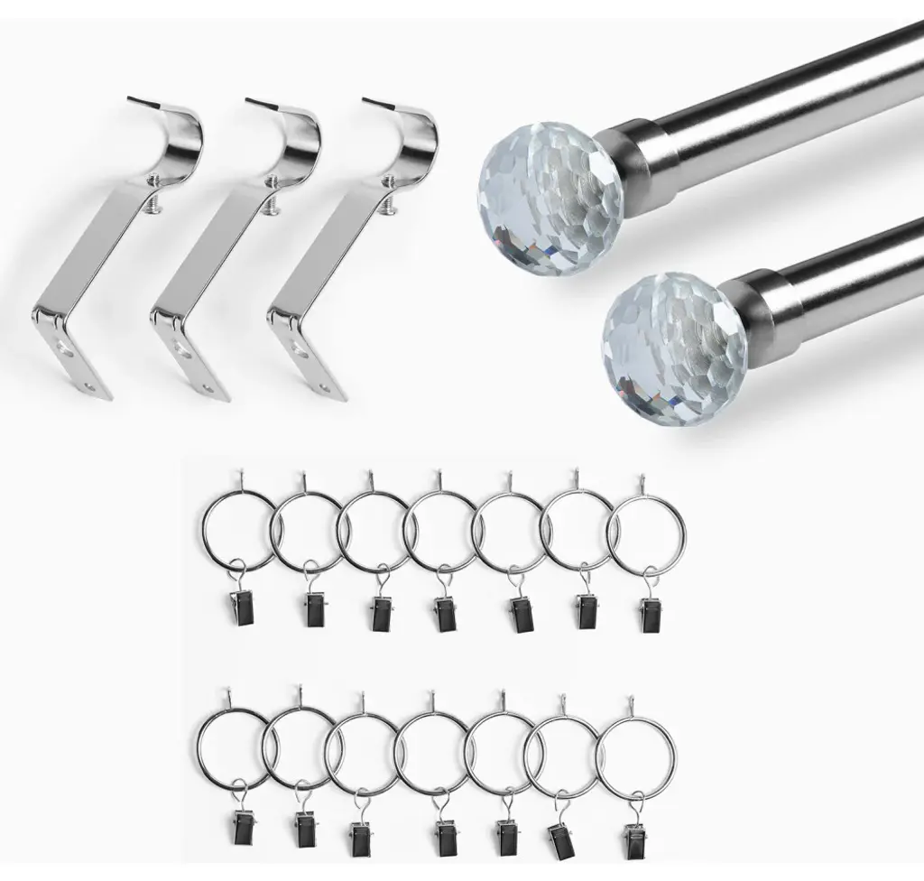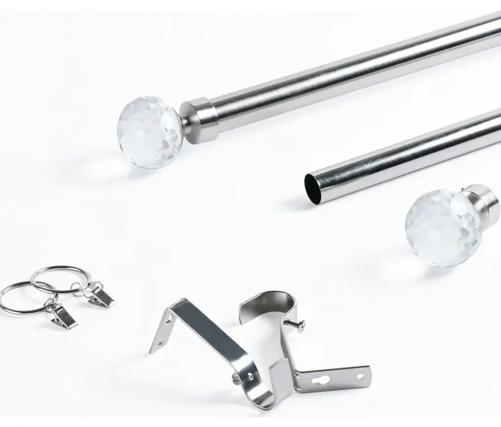 The modern metal finish of our Nickel Extendable Metal Rod Set dresses up any window for a designer quality look! Our Nickel Extendable Metal Curtain Rod Set comes complete with a telescoping curtain rod, mounting brackets, stylish removable finials, and installation hardware including screws and wall anchors. Our sturdy 1" diameter rods expand from 52" to 144" wide and come with installation instructions.
