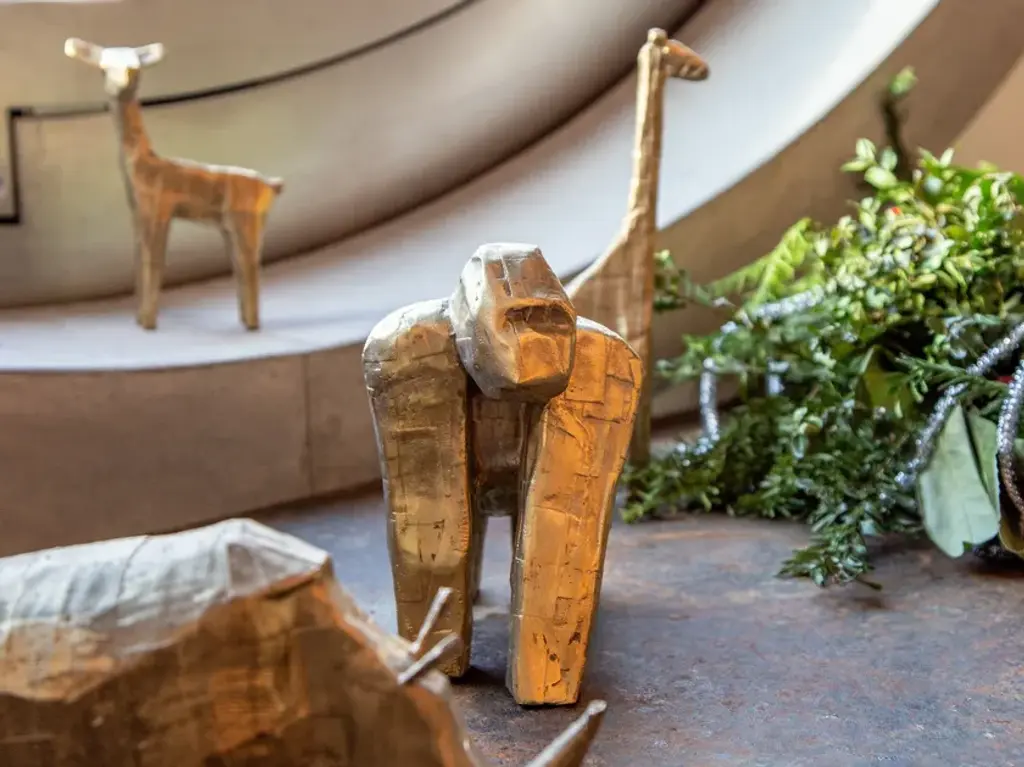 Beating his chest as the biggest member of the statuette family enters the enigmatic gorilla. Bold in size and stature, his handmade form presents a delicacy that defies the solid bronze production. Paper and tape has been used to bring his stature to life, resulting in a character that is ready to be the centre of your tablescape. This gorilla statuette was crafted by hand using paper and tape. The final cast bronze form is then left untreated to reveal this design process. The natural patina of bronze will develop over time.A crash, a tower, a herd, a flock. However you name this groupe, they simply belong together. Stirred by explorations into nature and art, German designer Kai Linke has handcrafted a diverse crowd. Quaint yet bold. Rough yet radiant. Kai’s animal statuettes are the perfect pint-sized companions.