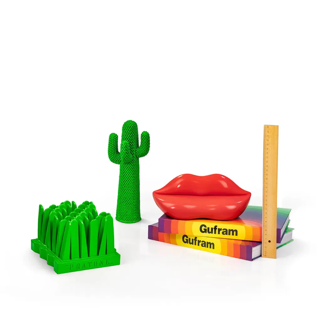 Gufram icons have become smaller and have turned into Guframinis! Designed in a 1:8 scale the new miniatures perfectly reproduce the famous original sculptures. Each "mini" creation is made of polyurethane foam which is injected into the mold which has previously been painted so to get, through a state-of-the-art method, a unique piece that is identical to the original one: the same softness, same colors and same details. Each Guframinis is then finished by hand, every piece is one-of-a-kind.
