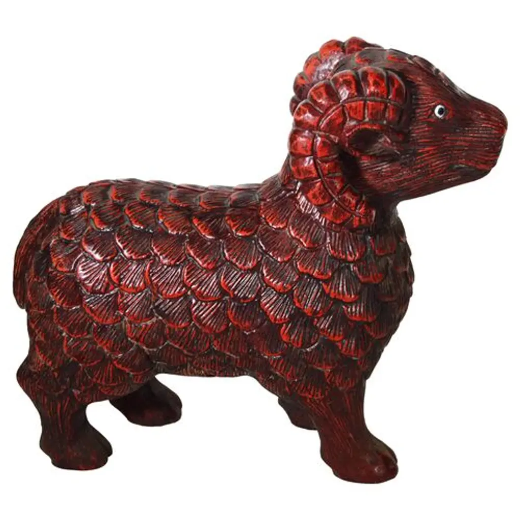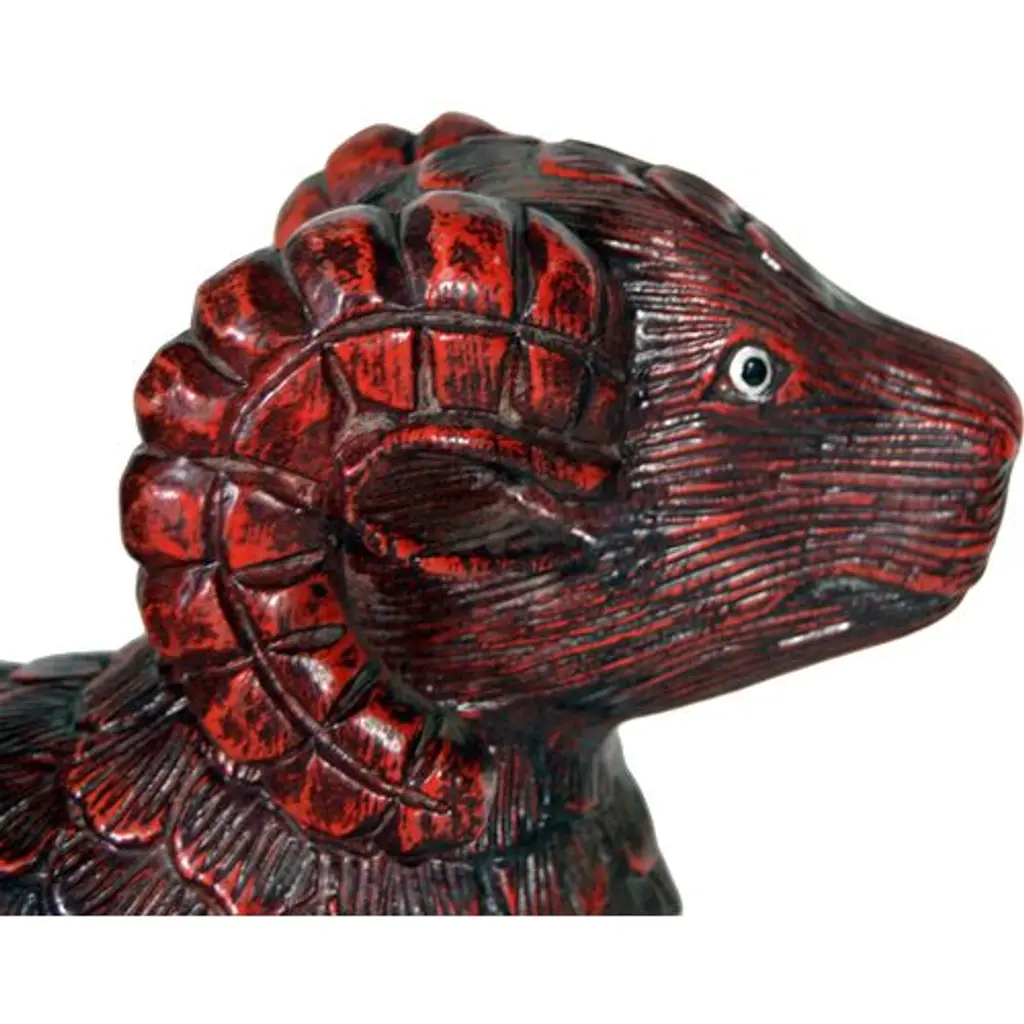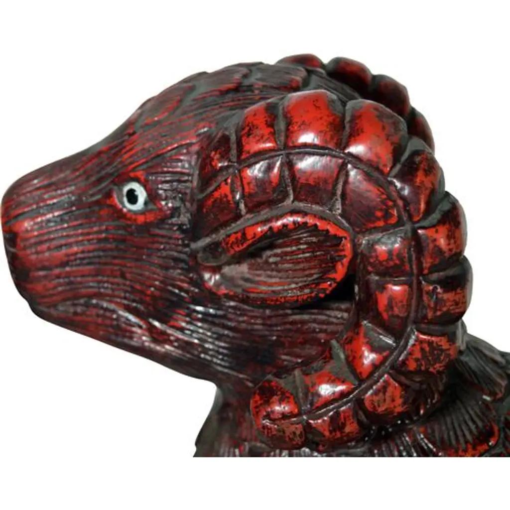 Indonesian hand-carved wood ram with red lacquered highlights, circa 1970.