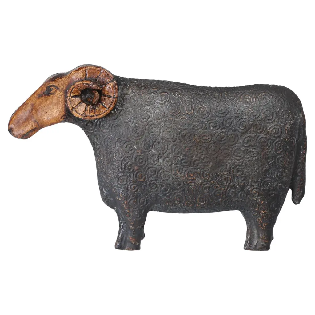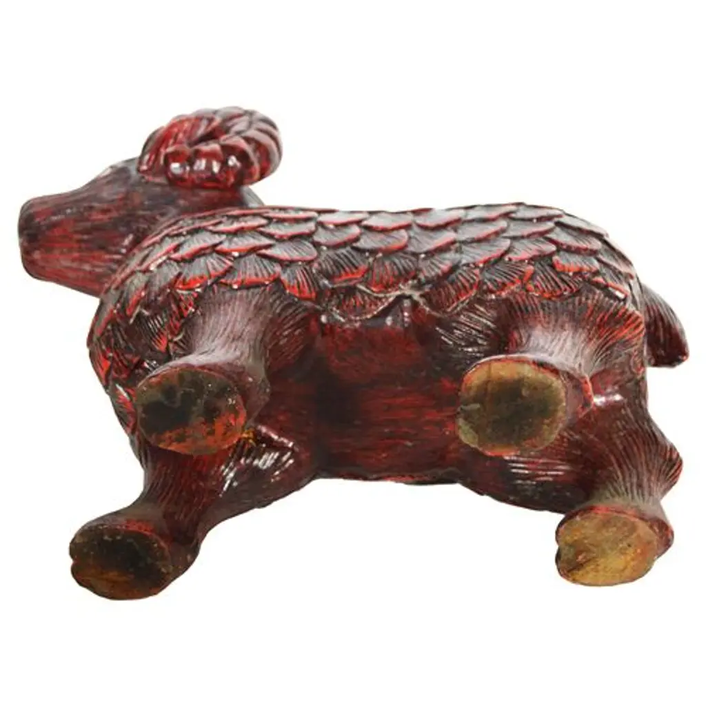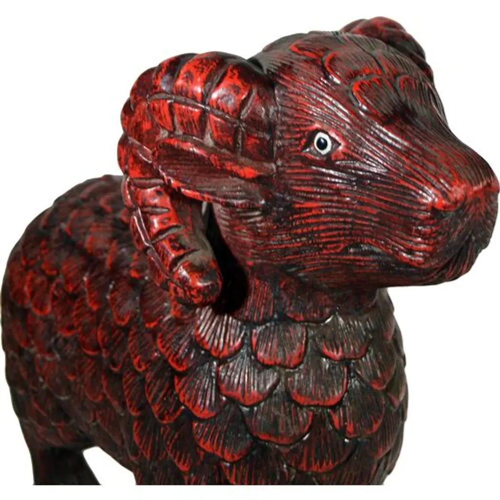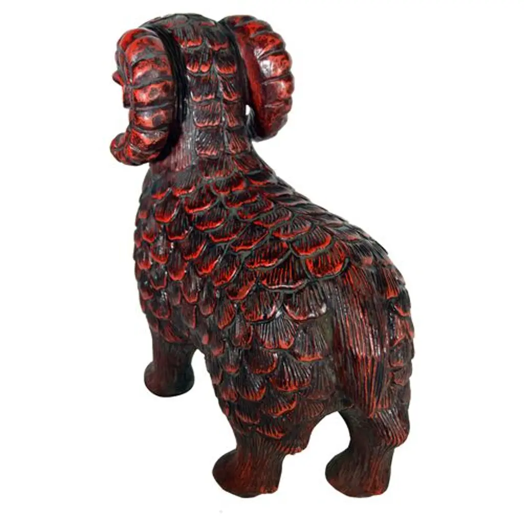 Indonesian hand-carved wood ram with red lacquered highlights, circa 1970.
