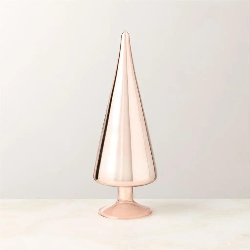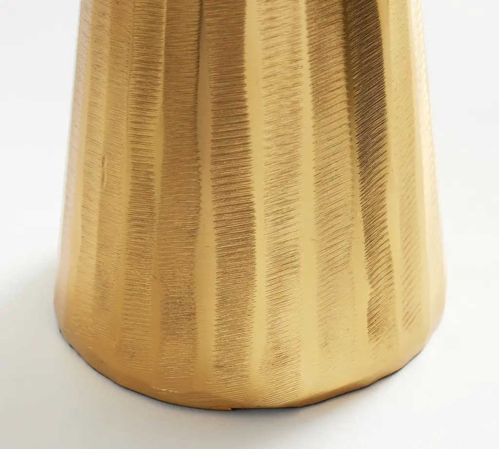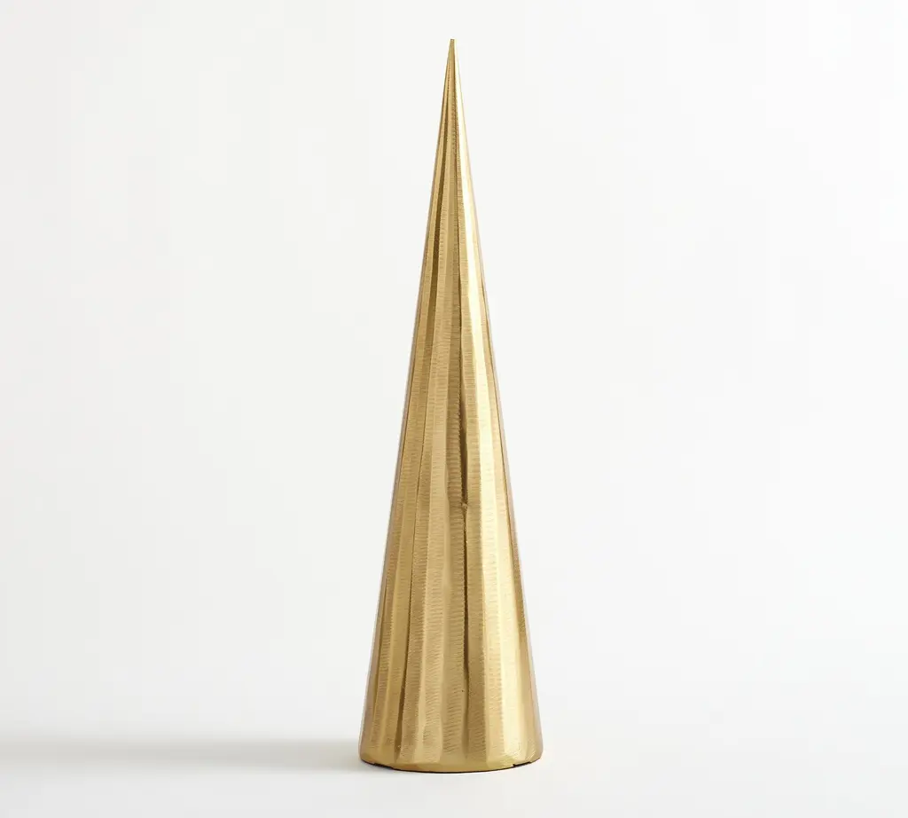 Add height and drama to seasonal displays with this modern, abstract tree. Handcrafted from aluminum, it has a glowing brass finish and softly etched texture that give it a luxe, festive look. Arrange it with a variety of artisanal objects, candles, and botanicals on a mantel, console, or at the center of a table.