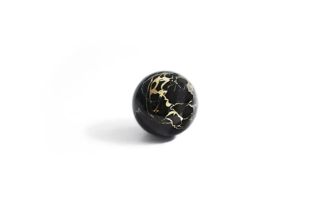Handmade Small Paperweight With Sphere Shape In Portoro Marble