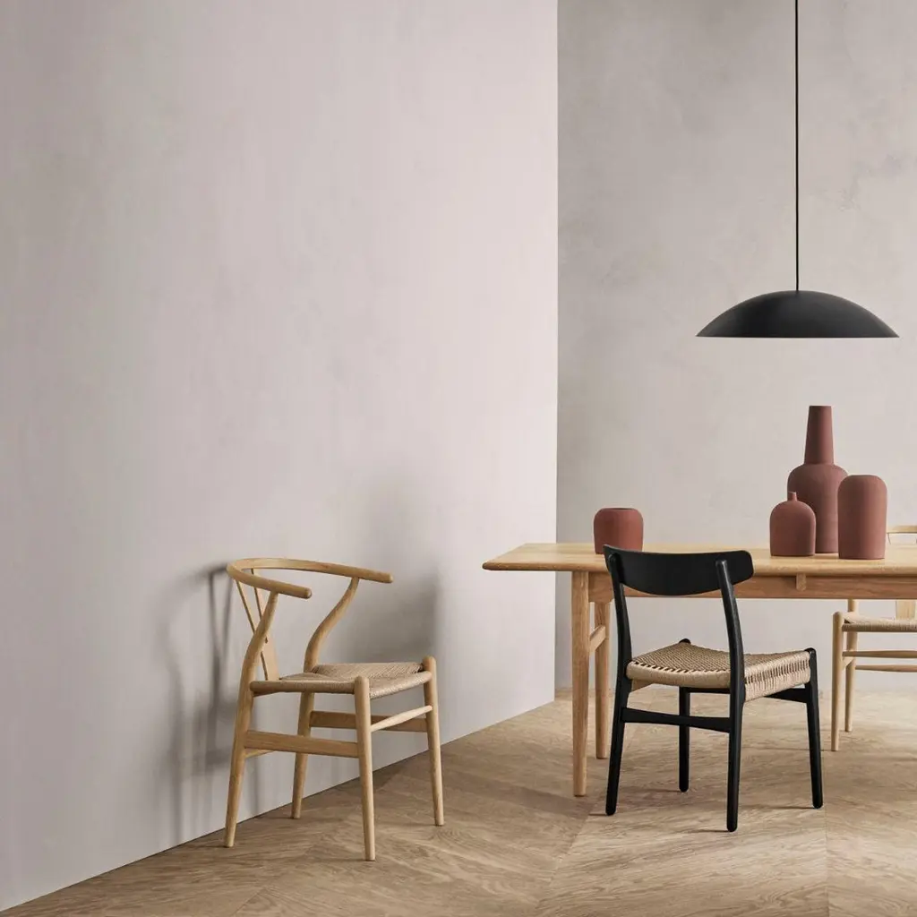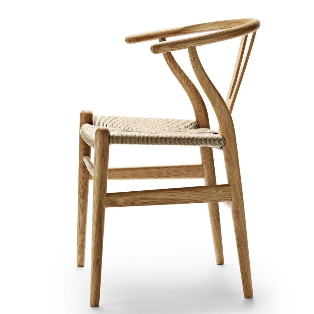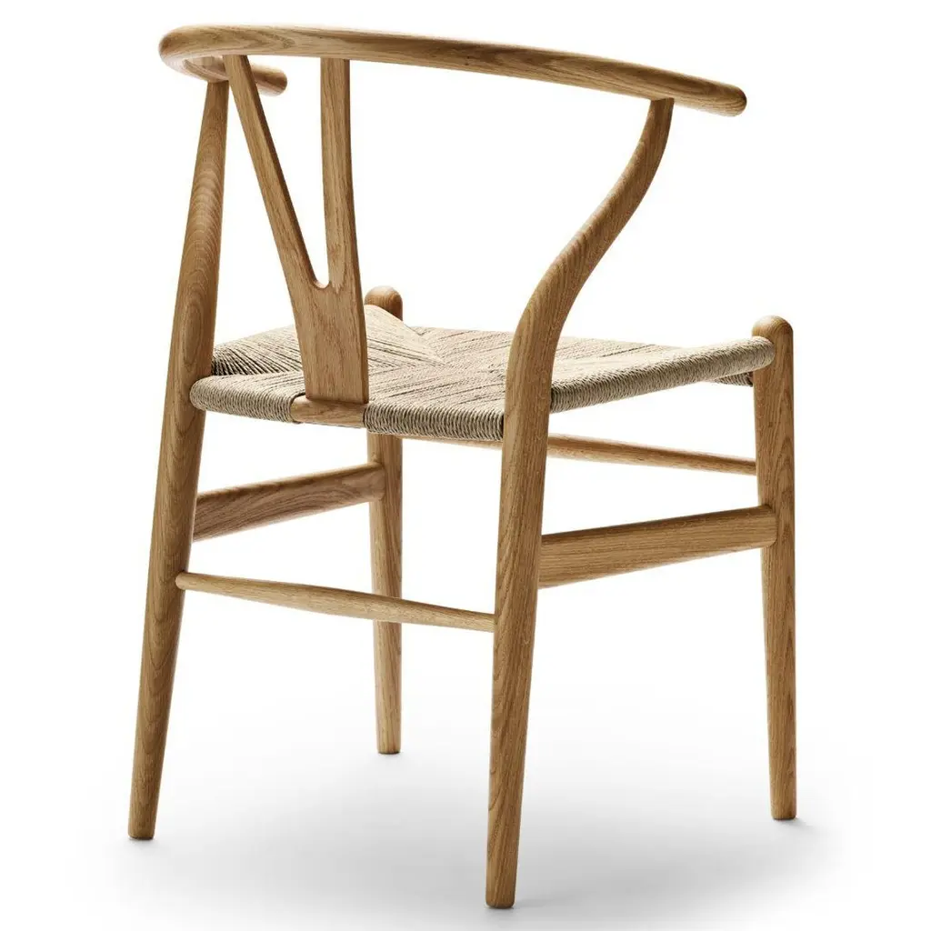 Hans J. Wegner 'CH24 Wishbone' Chair in Oak & White Oil for Carl Hansen & SonThe story of Danish Modern begins in 1908 when Carl Hansen opened his first workshop. His firm commitment to beauty, comfort, refinement, and craftsmanship is evident in iconic pieces designed by such legends as Hans J. Wegner, Arne Jacobsen, Kaare Klint, Poul Kjærholm, Vilhelm Lauritzen and others. Now in its third generation as a family run business, Carl Hansen & Son maintains its legacy through skillful work with the highest quality materials, sustainably producing Danish design classics by past icons and influential new designers.With a form uniquely its own, Hans J. Wegner's 'CH24 Wishbone' chair embodies iconic Midcentury design. Expertly crafted with more than 100 steps the 'CH24 Wishbone' beautifully combines the back and armrest into a single piece. To ensure comfortable support Wegner developed the characteristic Y-shaped back with which this chair's name is derived from. The handwoven seat consists of 120 meters of papercord which contributes to this chair's satisfying aesthetic as well as its comfort & stability. The completed design highlights the core of Wegner's legacy, showcasing the inner soul of furniture pieces through a simple and functional exterior. Executed in FSC-certified oak, natural papercord and an oil finish.Price per item. Available in unlimited quantities in choice of ash, beech, oak, walnut, mahogany or teak wood, with finishes in soap, lacquer, oil, white oil, smoke oil as well as various CHS colors. Papercord available in black or natural. Leather seat cushions are not included but are available in a variety of colors for an additional cost. This listing is for the 'CH24 Wishbone' chair in FSC-certified oak, with oil finish and natural papercord. In stock lead time 4-5 weeks, out of stock lead times can add an additional 8 weeks or more. Please note that lead times, cost and inventory availability are subject to change without notice and dependent on choice of wood, finish and material ordered.Made to order. All sales are final.