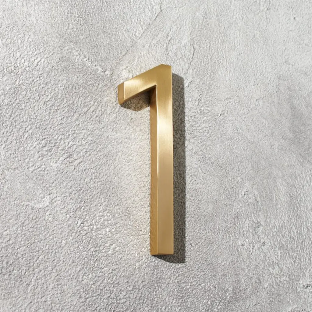 Solid brass house number adds a touch of sophistication in a modern serif font designed at Lineto, a type foundry based in Switzerland. CB2 exclusive.