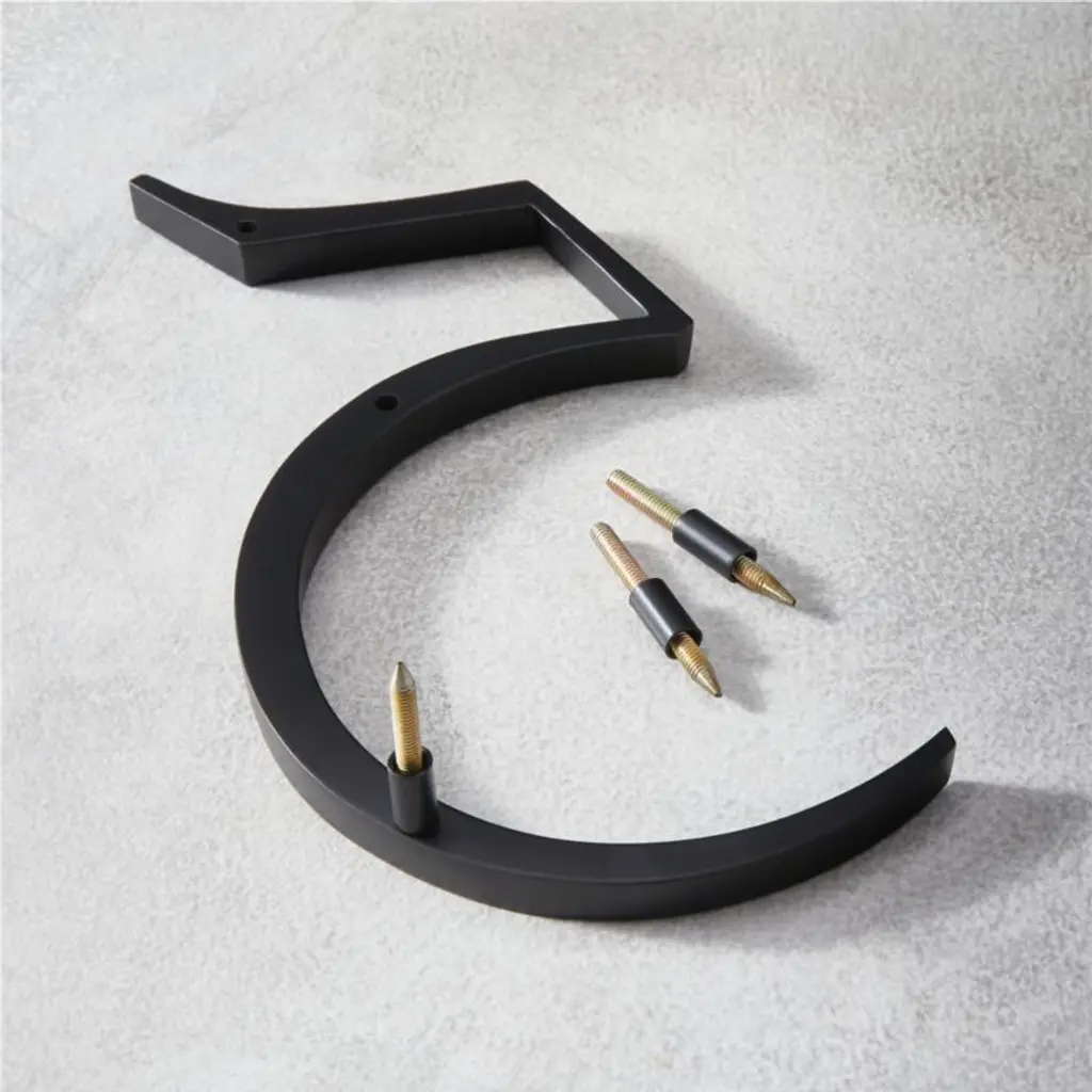 Solid brass house number adds a touch of sophistication in a modern serif font designed at Lineto, a type foundry based in Switzerland. CB2 exclusive.