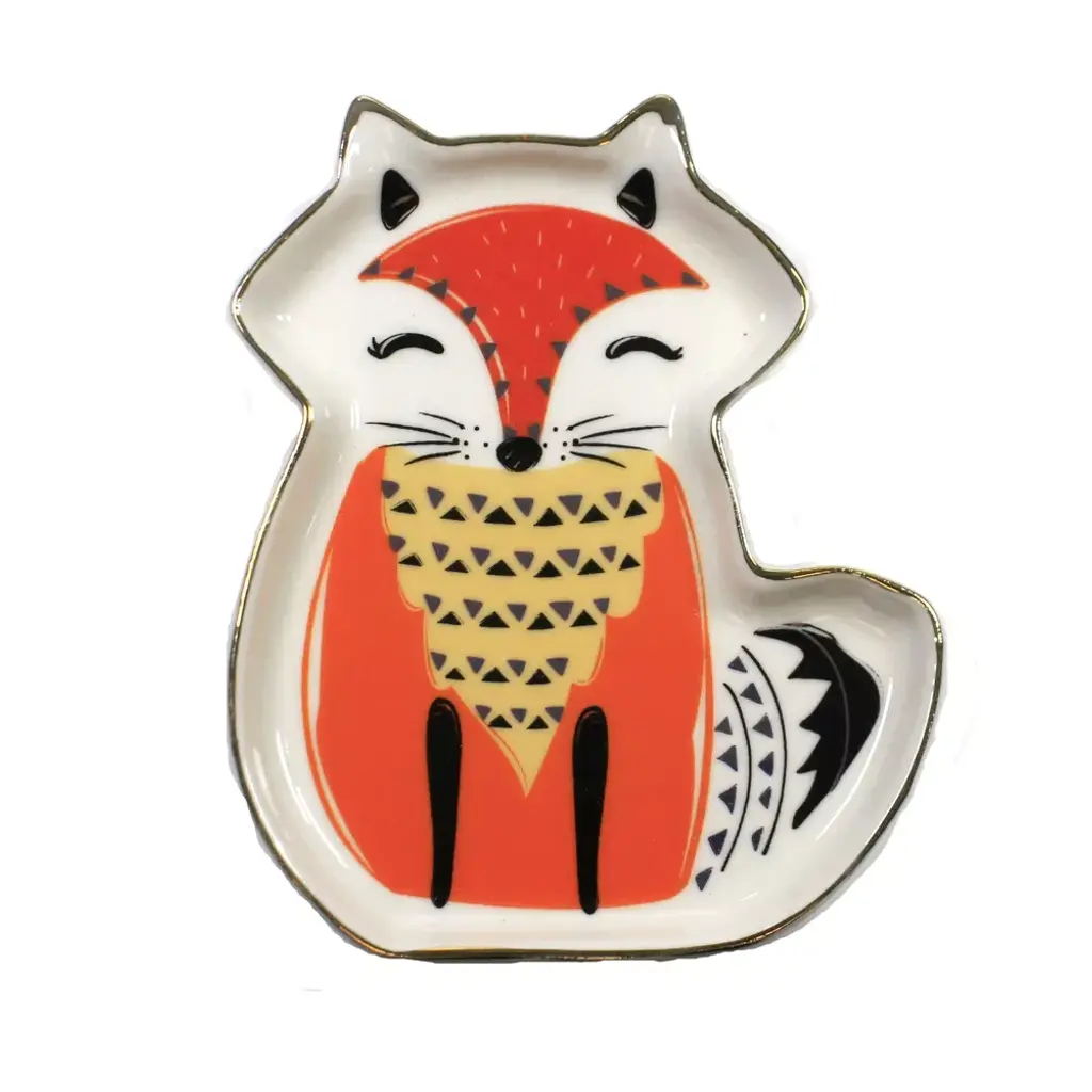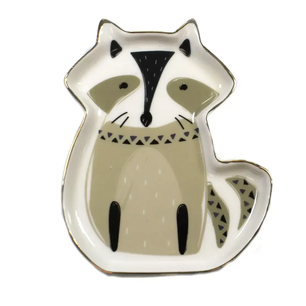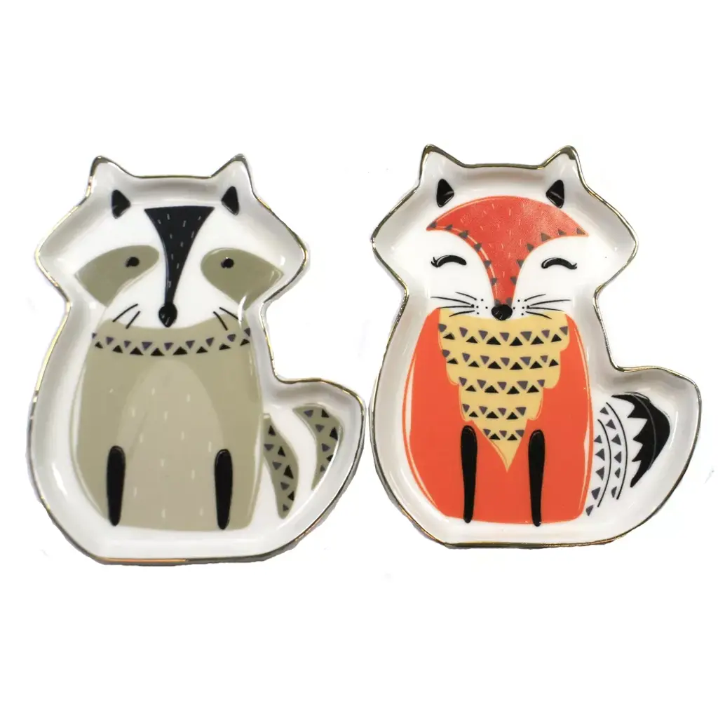 A Set Of Two Animal Shaped Ceramic Trinket Dishes Accented By A Gold Foil Border Featuring Modern Designs Of A Sly Fox And Mischievous Raccoon In Center Of The Dish.. New. Measurements 5.0 In H X 3.75 In W X .50 In D. . Made Of Ceramic. No Assembly Required. Indoor Use Only. Imported. NOTE: For Decorative Purpose Only. This Is Not A Toy. Not For Children.