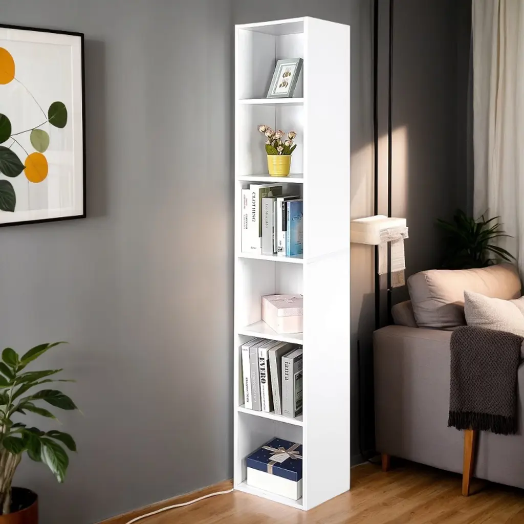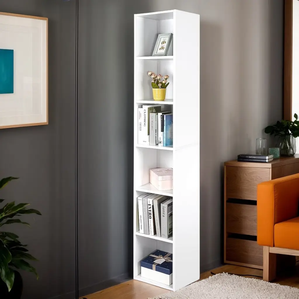 Hommoo 70.9" Corner Bookcase, Modern 6-tier Narrow Cube Display Shelves White