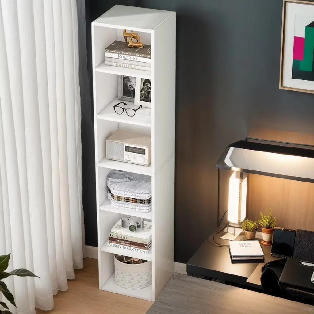 This cube bookshelf features 6-tier open shelves which provide you ample storage space for books, photos, plants, and other decorations, and also help keep everything organized and within reach.