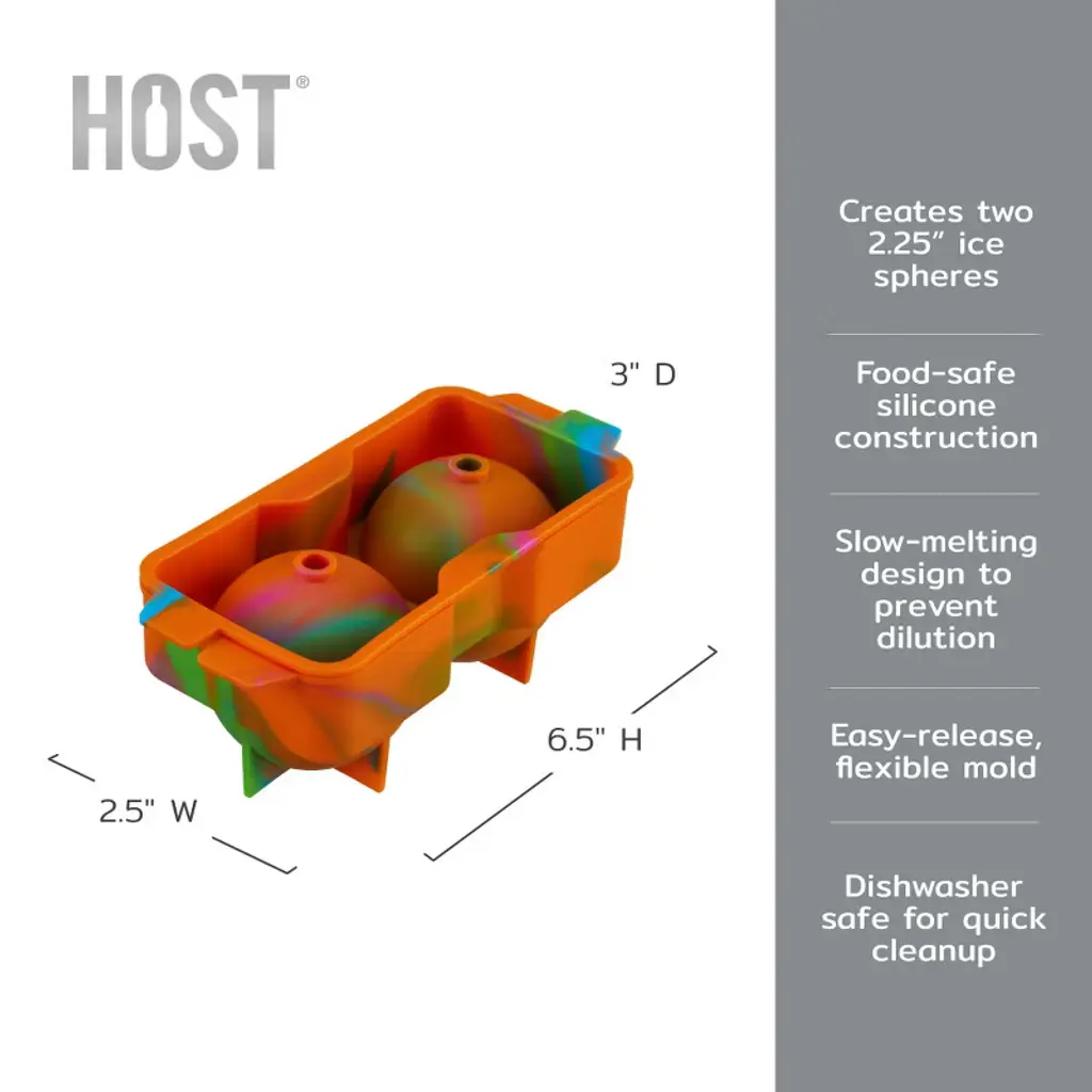 Host Silicone 2.25" Ice Sphere Silicone Mold In Colored Marble - Slow-melting For Cocktails & Whiskey - Makes Two Ice Spheres, Set Of 1