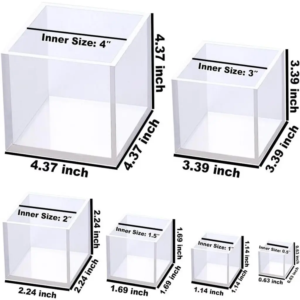 Transparent Cube Molds with Sharp CornersEvery inner surface of these molds is smooth and shiny, a game-changer for your crafting process. Unlike rough molds that leave finished pieces needing extra work, these let you skip sanding or polishing entirely. The sharp corners also ensure your creations have clean, crisp edges, whether you’re making small jewelry pieces or decorative blocks—no more compromising on a polished final look.Premium CLEAR SILICONE MaterialCrafted from high-quality transparent silicone, these deep square cube molds offer unmatched clarity. This crystal-clear design lets you see exactly what you’re doing as you pour resin, add embellishments, or work with other materials—helping you avoid mistakes and achieve precise results. What’s more, finished pieces made with these molds are far shinier than those from white molds, boosting their visual appeal. The silicone is also flexible yet sturdy, so the molds won’t easily tear or lose shape, even with repeated use.Wide Range of ApplicationThese cube epoxy casting molds are incredibly versatile, perfect for a host of DIY projects. Use them to make resin jewelry like earrings or pendants, resin keychains for personal use or gifting, or resin night lights that add a warm glow to any room. They’re also great for creating paperweights, decorative resin blocks, and even Christmas or wedding table decor to spruce up special occasions. Beyond resin, they work for soap making and loaf candle DIY—expanding your crafting possibilities.Compatible with Various Casting MaterialNo need to buy separate molds for different projects—these cube silicone molds work with most common casting materials. Whether you prefer epoxy resin for durable decor, UV resin for quick-setting pieces, gypsum for sturdy crafts, or even candle wax and soap bases, these molds handle it all. This compatibility makes them a flexible tool that adapts to your creative needs, saving you time and money.After SalesWe understand that quality matters when it comes to crafting tools. If you run into any issues with these resin silicone molds—whether it’s a defect or a question—don’t hesitate to reach out. We’re committed to helping you find a satisfactory solution, so you can get back to creating without stress.